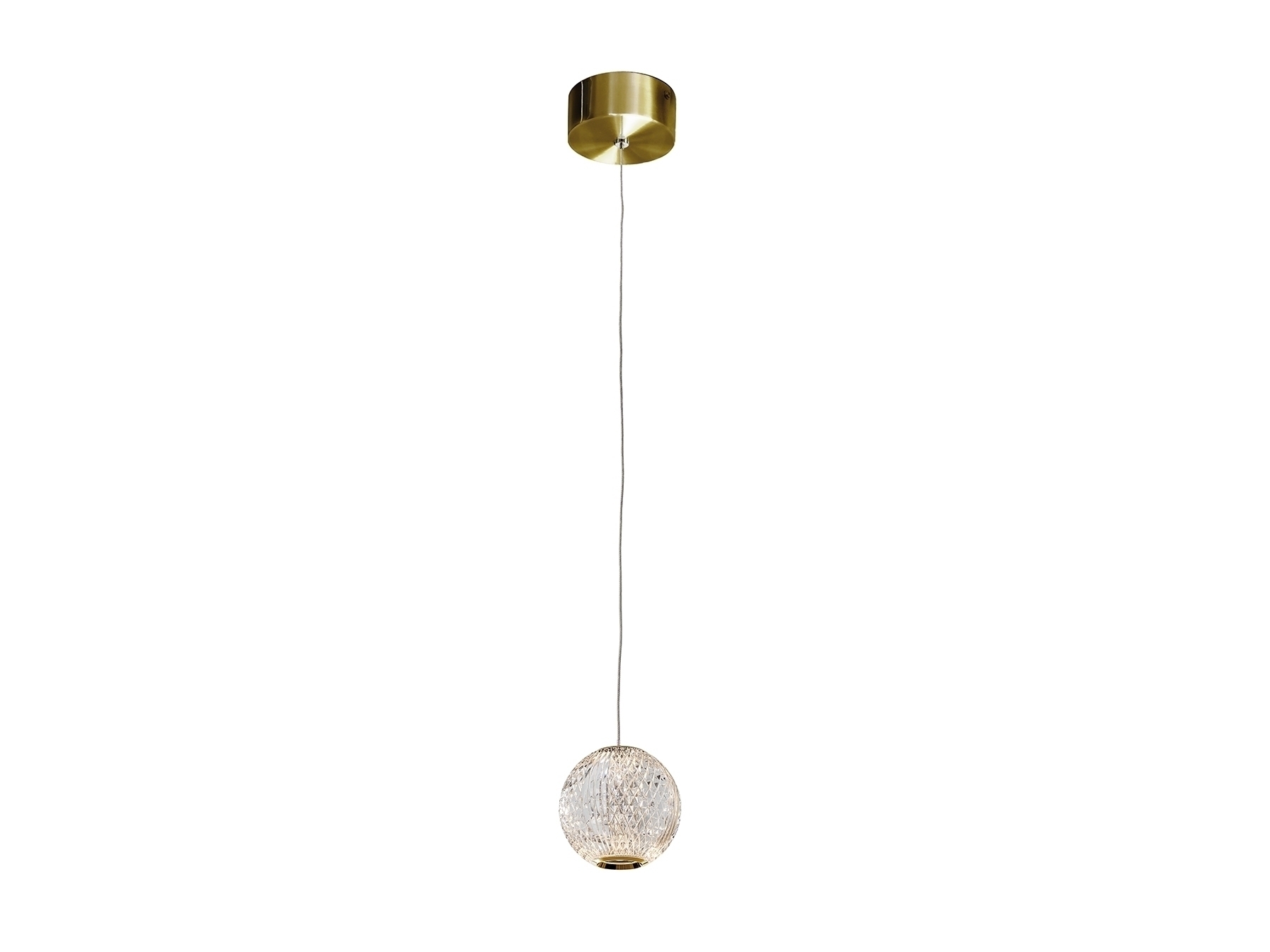 1-ламповый светодиодный светильник, металл с золотым покрытием. Сферическая линза Ø11 см из прозрачного оптического акрила, имитация хрусталя. Светодиод мощностью 6Вт. 3,200К. 272 лм.