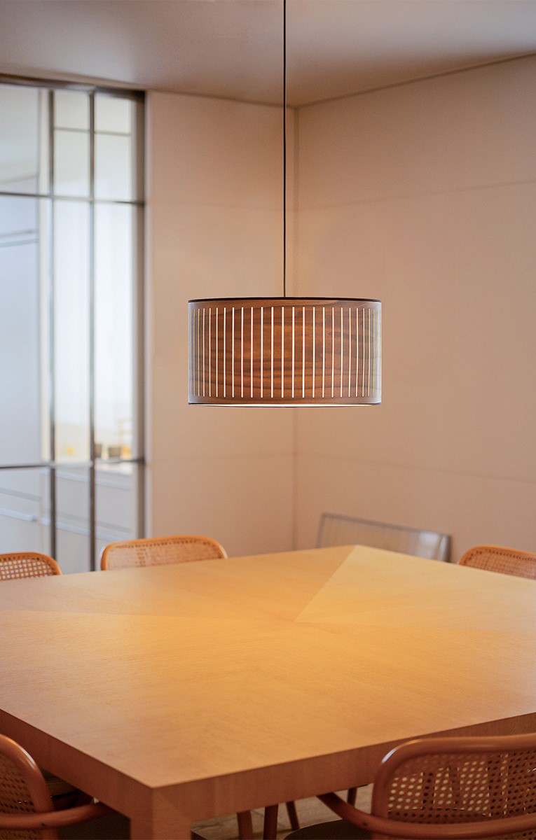 Коллекция Autumn характеризуется фильтрацией света через ламели из натурального дерева, создавая теплую и спокойную атмосферу, которая переносит нас в уютный осенний полдень.