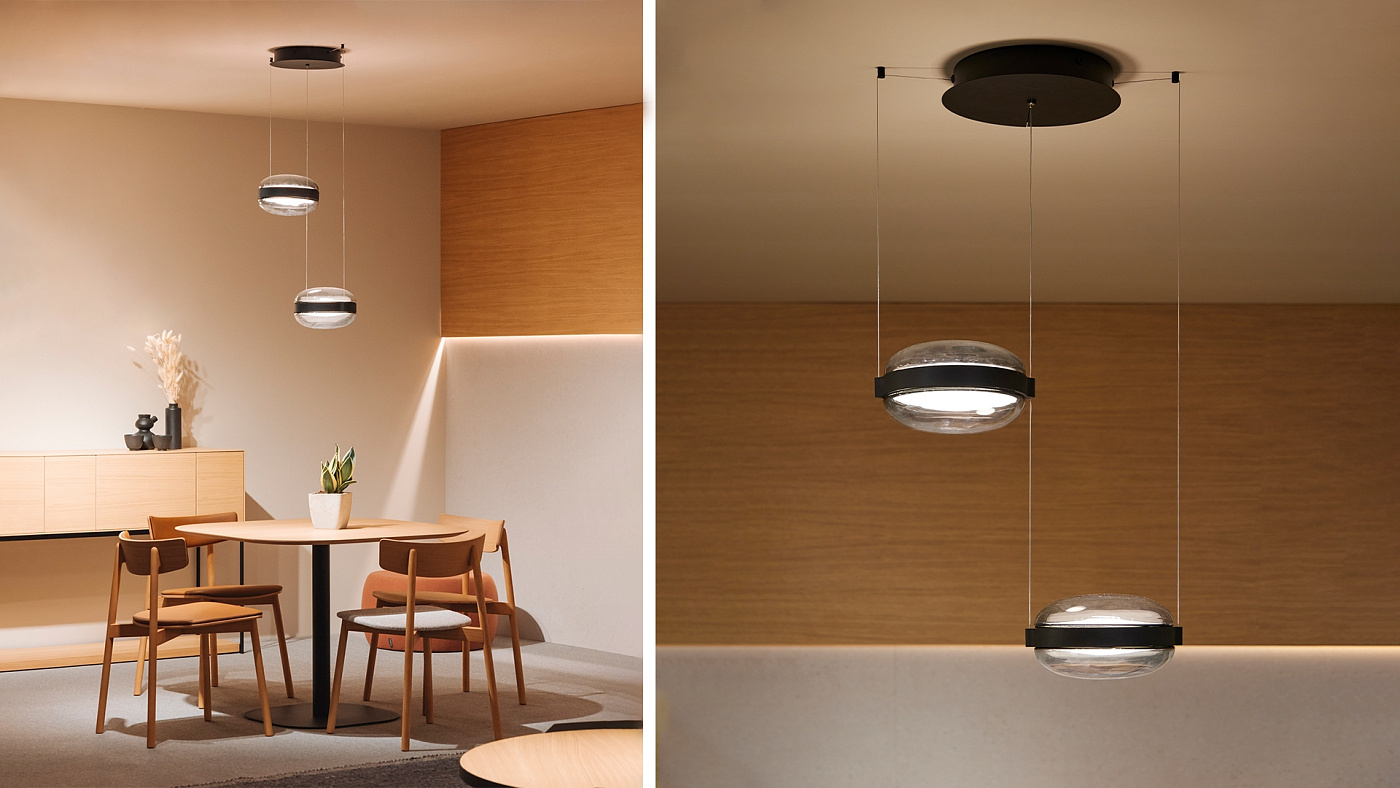 Beaded S — это серия подвесных светильников, изготовленных из алюминия и выдувного стекла. Beaded доступен в индивидуальной версии (S1) или в виде блоков из 3 или 5 светильников (S3 и S5), а также в горизонтальной версии с двумя или тремя светильниками (SH2 и SH3). Его двойной рассеиватель из выдувного стекла доступен в опалово-белом или дымчато-сером цвете; в последнем варианте используется плоский внутренний рассеиватель, который скрывает источник света. Эти светильники можно свободно устанавливать на разной высоте, то есть их можно адаптировать под любую высоту. Центральное алюминиевое кольцо имеет текстурированную матовую чёрную отделку.