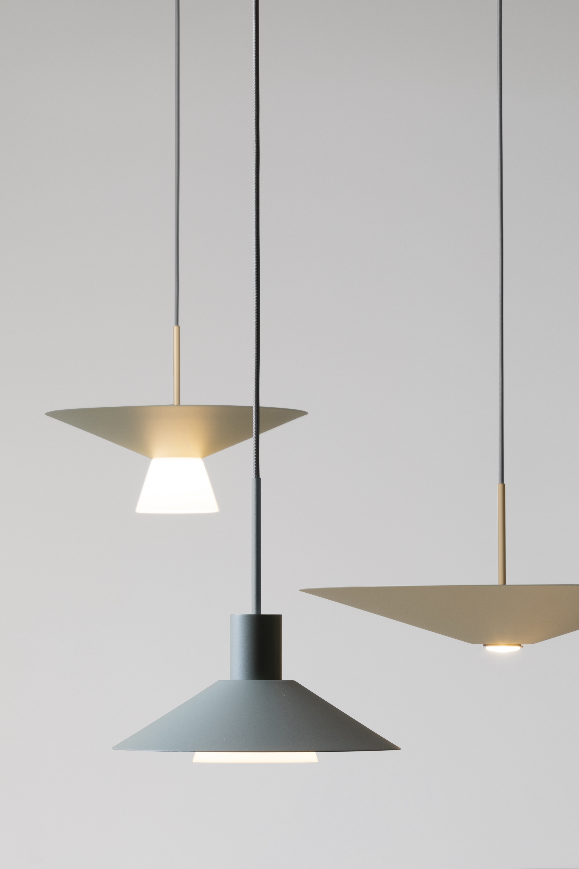Подвесной светильник с металлическим корпусом, текстильным кабелем, опциональным стеклянным абажуром, акриловым (ПММА) рассеивателем линз и встроенным светодиодом. Стеклянный абажур можно исключить для другого стиля дизайна. Регулируемая высота с индивидуальным навесом, подходит для создания различных композиций.