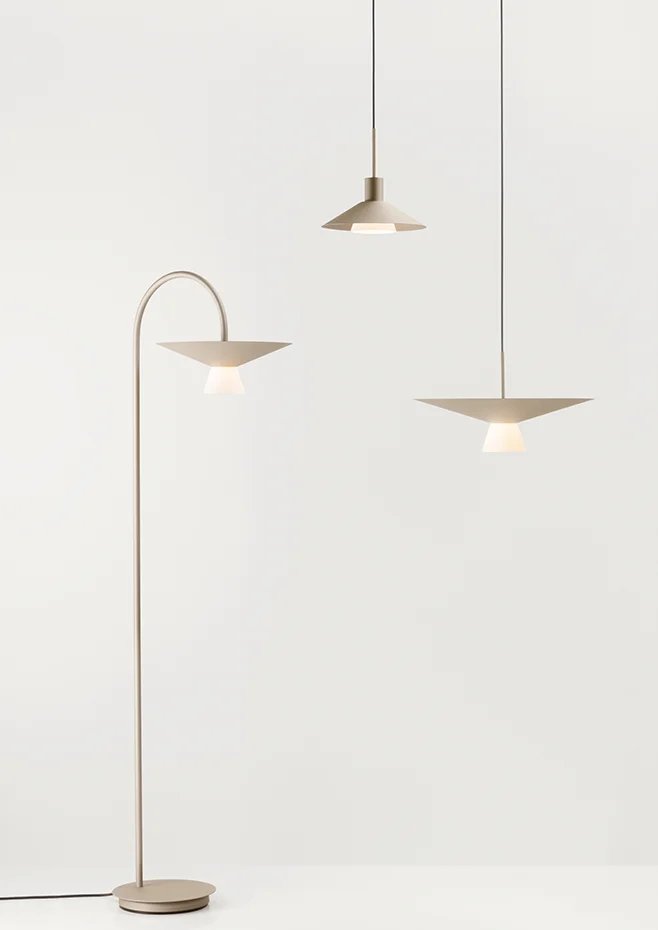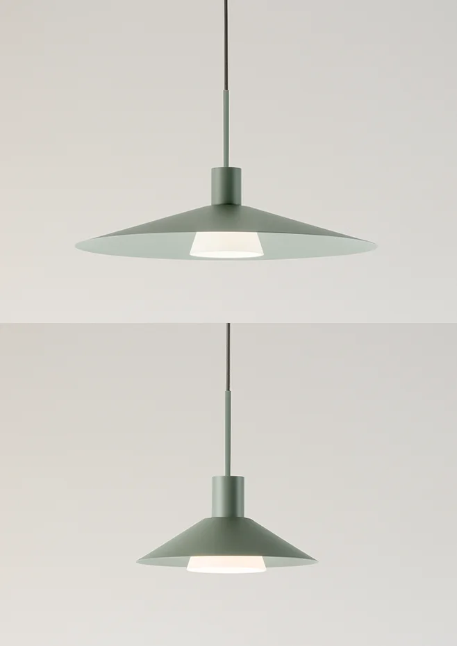 Подвесной светильник с металлическим корпусом, текстильным кабелем, опциональным стеклянным абажуром, акриловым (ПММА) рассеивателем линз и встроенным светодиодом. Стеклянный абажур можно исключить для другого стиля дизайна. Регулируемая высота с индивидуальным навесом, подходит для создания различных композиций.