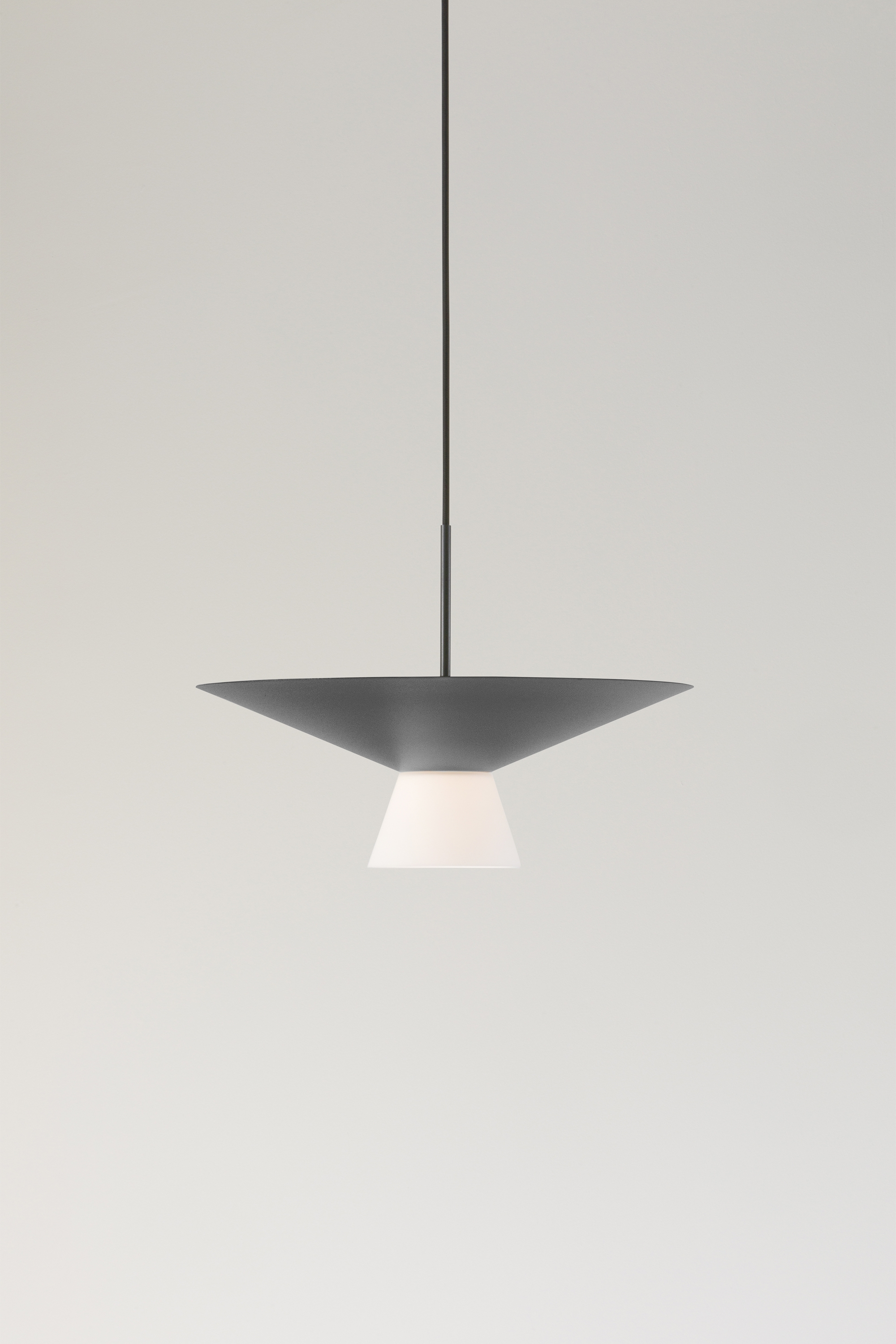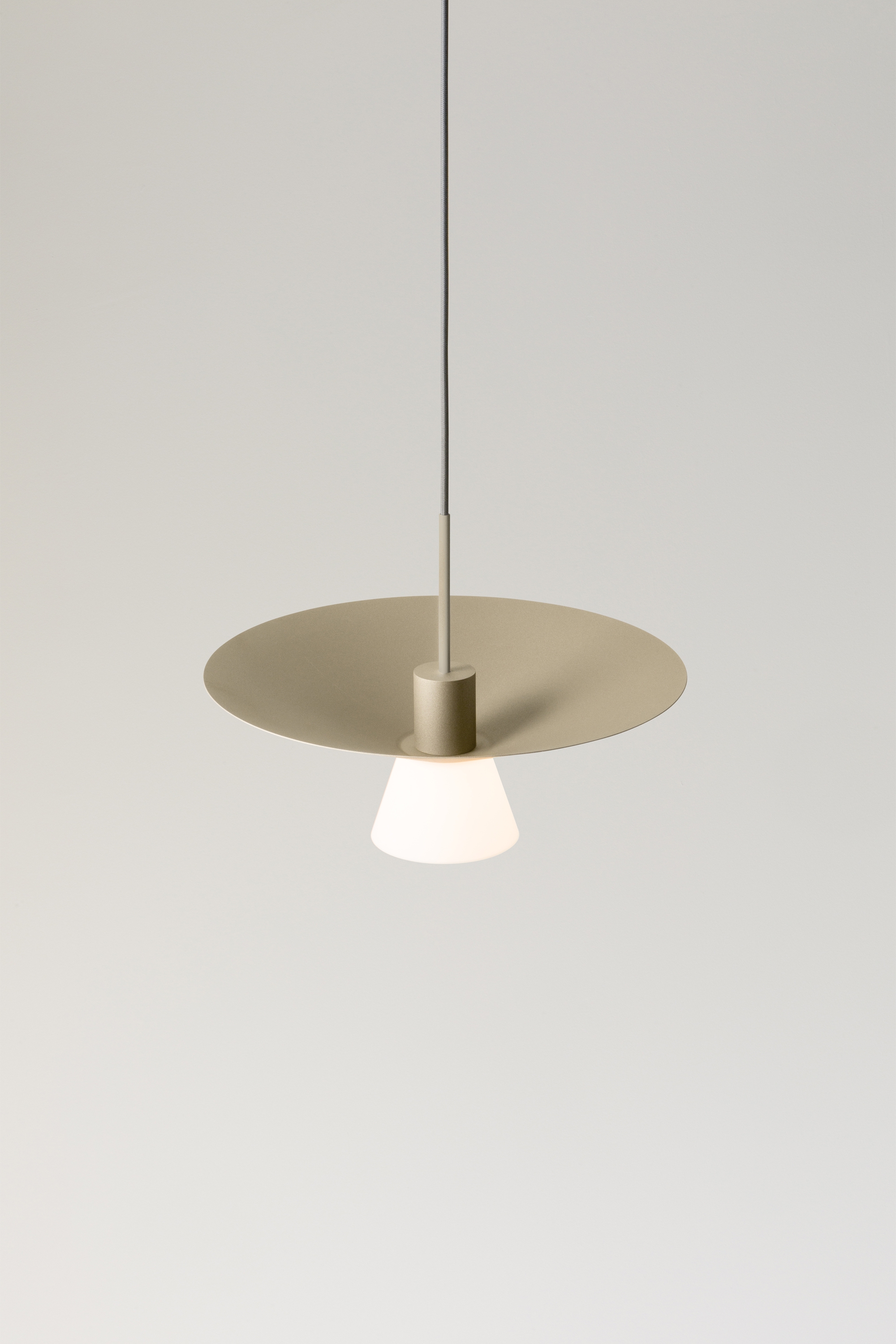Подвесной светильник с металлическим корпусом, текстильным кабелем, опциональным стеклянным абажуром, акриловым (ПММА) рассеивателем линз и встроенным светодиодом. Стеклянный абажур можно исключить для другого стиля дизайна. Регулируемая высота с индивидуальным навесом, подходит для создания различных композиций.