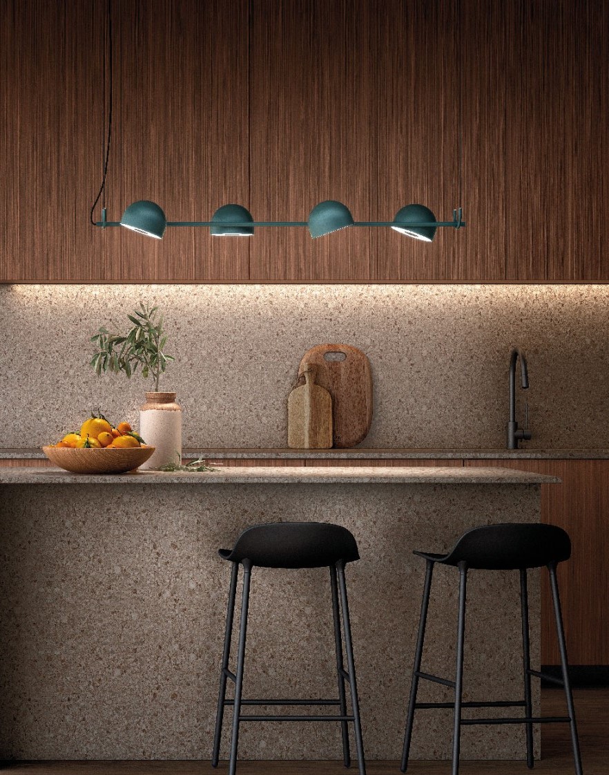 Подвесной светодиодный светильник, состоящий из полусферических абажуров, доступен в вертикальной (S) и горизонтальной (SH) версиях. Bowee S доступен с одним экраном (S1) и с двумя экранами (S2). Bowee SH доступен с четырьмя экранами (SH4) и с шестью экранами (SH6). Все источники света регулируются по горизонтальной оси и излучают рассеянный свет. Доступны в металлизированной английской бронзе, матовой бирюзовой и матовой бежевой отделках.