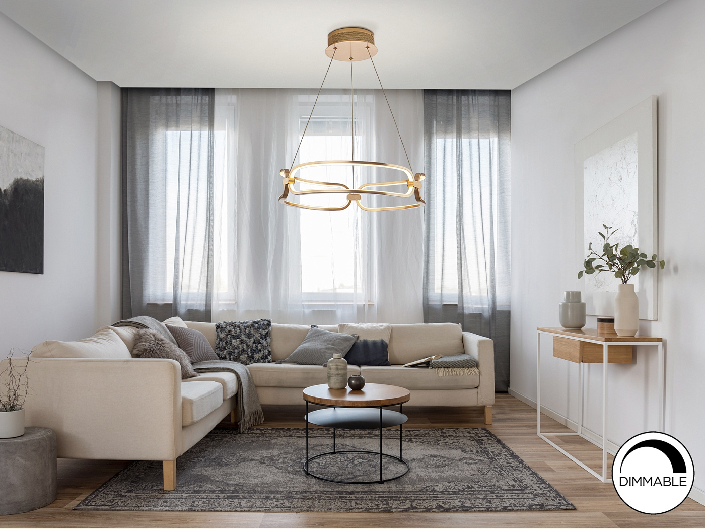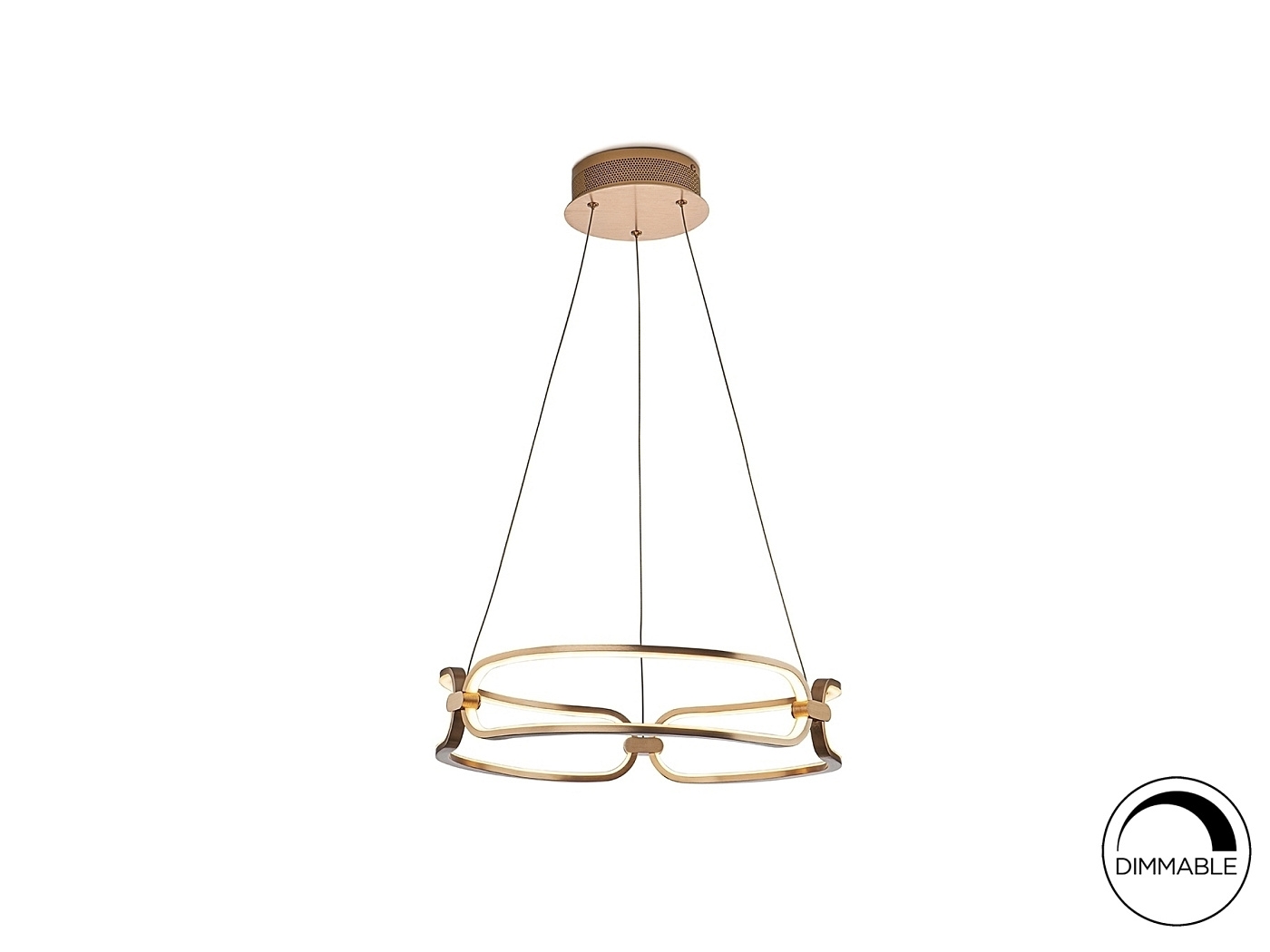 Подвесной светильник LED маленького размера, из алюминия с матовым полированным золотистым покрытием. Силиконовые рассеиватели опалового цвета. С регулируемой высотой, 37W LED, 3330 Lm, 3000 K.
