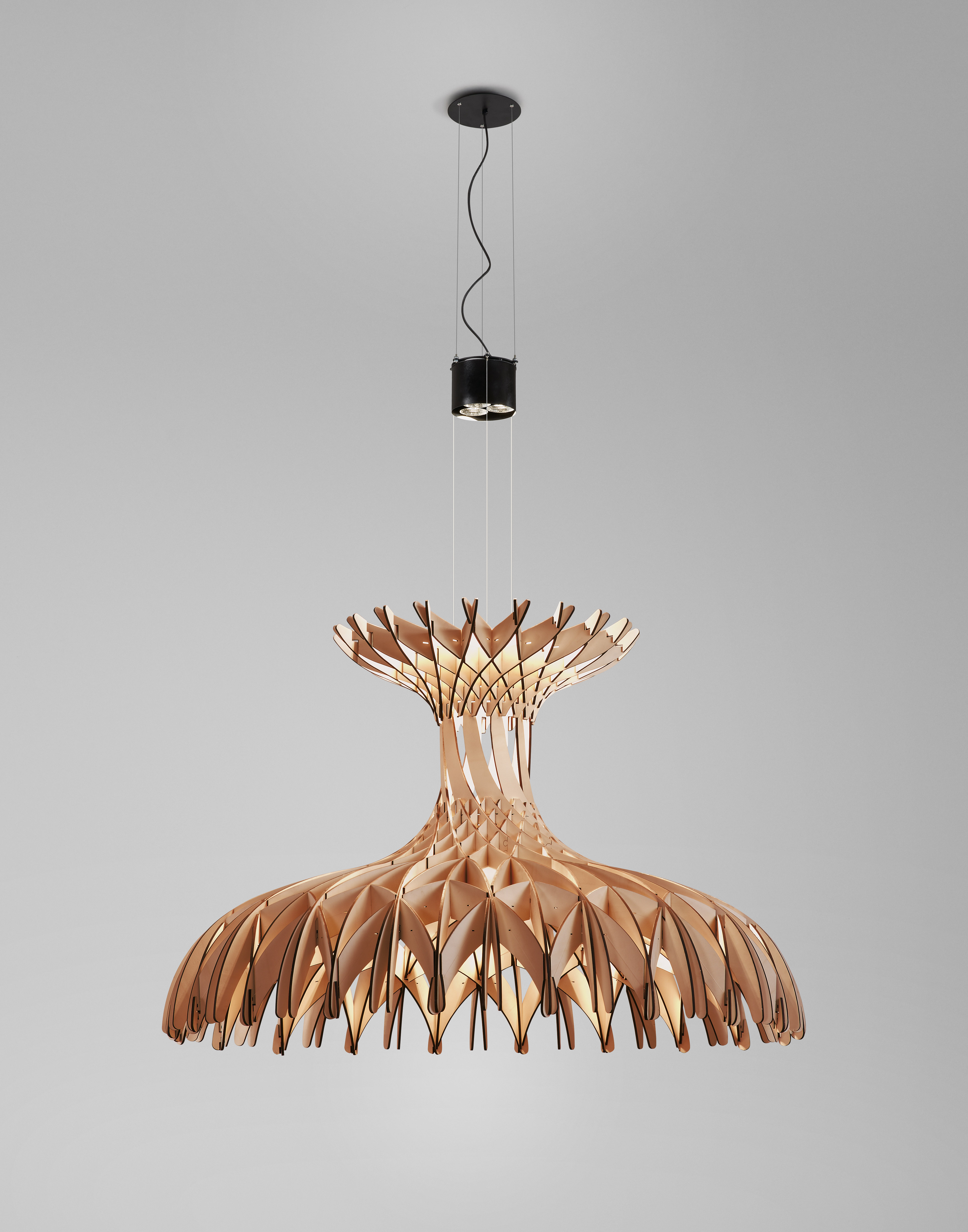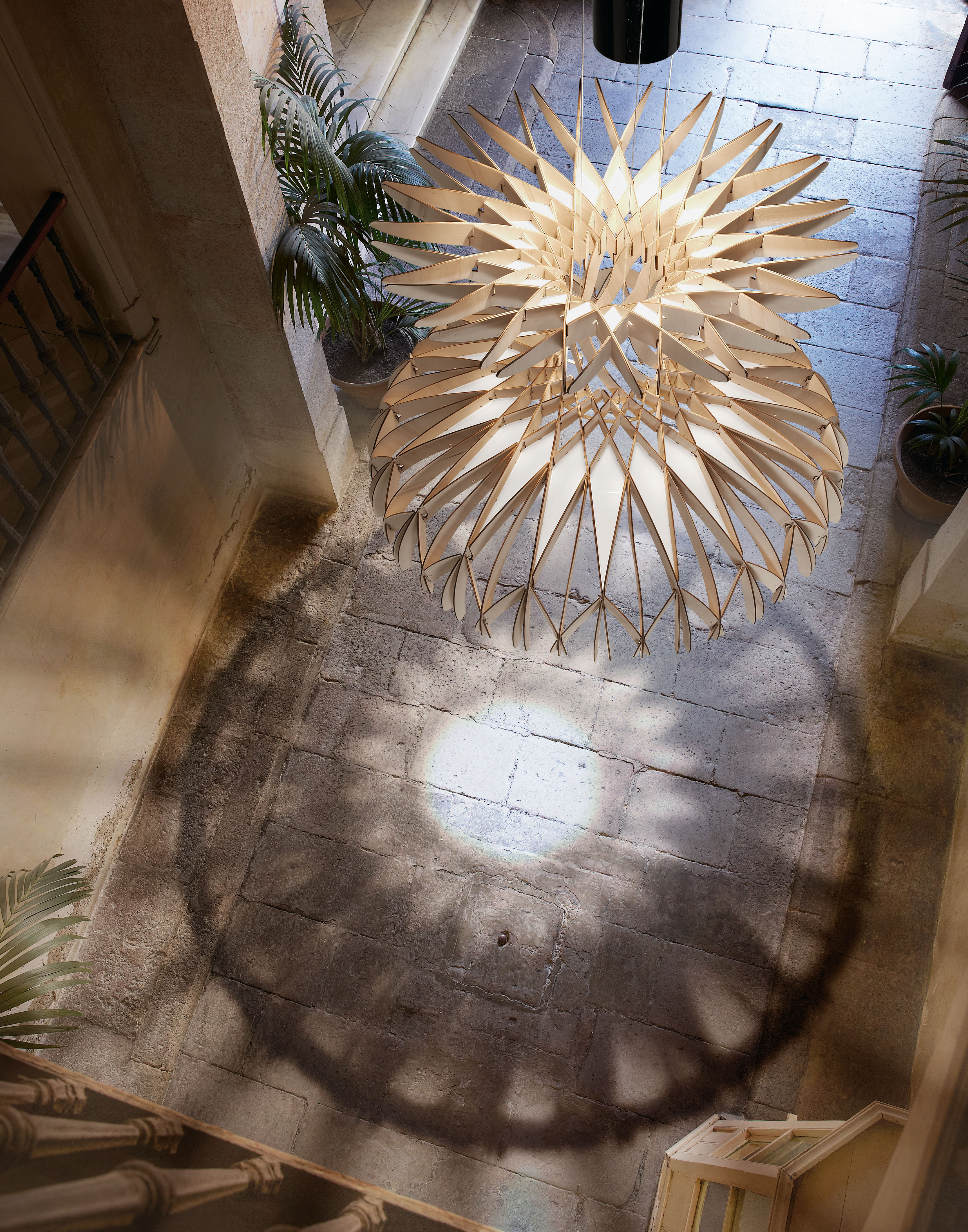 Интеграция дизайна, искусства и света в архитектуре восходит к давным-давно, и, возможно, именно поэтому лампы постепенно перестали быть просто предметом, излучающим свет, и превратились в световую скульптуру, придающую особую индивидуальность изделию и его среда. Свет настолько важен, что любое изменение предмета может изменить формальную концепцию всего проекта. Скульптура может казаться более или менее статичной, в зависимости от получаемого света. В DOME мы решили вывести свет из объекта, чтобы он стал световой скульптурой, предназначенной для приема и излучения нежного света, игры теней и нюансов, которые обогащают пространство, для которого они были созданы. Разработка этого проекта с Бенедеттой позволила нам задуматься об искусстве освещения, о том, как переосмыслить свет и о создании продуктов с более художественным подходом и менее индустриальным видом. Это также позволило нам быть сметенными и делать то, что мы действительно любим делать. Эти световые скульптуры полностью изготовлены вручную в штаб-квартире Bover в Барселоне. Более 170 больших и маленьких деревянных фрагментов грамотно переплетены и сшиты один за другим, чтобы в итоге получилась вот такая головоломка.