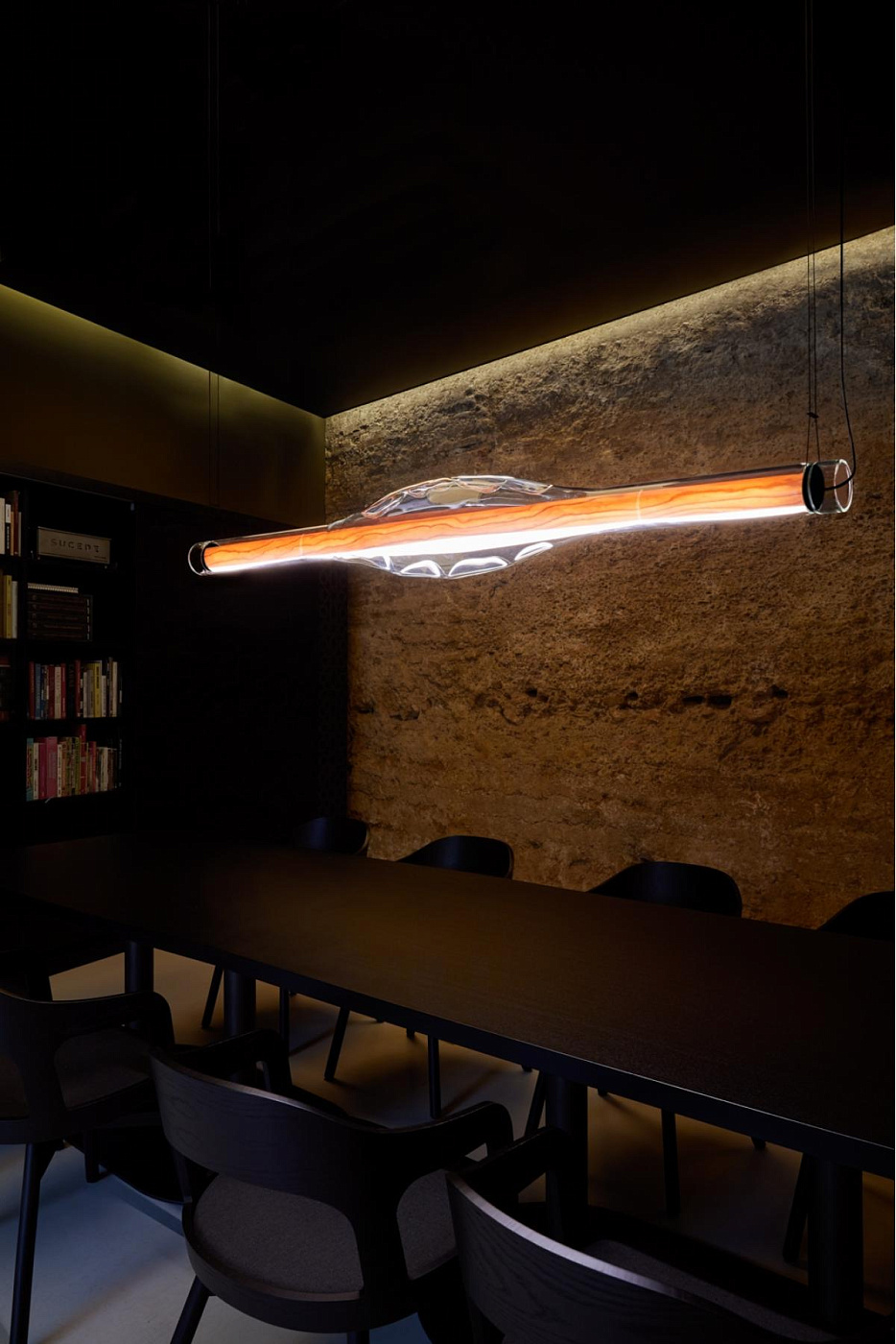 Дюна - это скульптурный свет, форма которого интригующе аморфна. Разработанный мадридской Mayice Studio, Dune представляет собой цельный кусок боросиликатного стекла ручной дутье, окаймляющий диффузор из фанерованного дерева с отверстием в виде семенной коробочки с одной стороны. Стекло выдувается вручную Эдуардо Гарути, опытным мастером. С мастерством и большой ловкостью Гарути может раскрыть естественную красоту стекла. Характерная форма Дюны состоит из двух симметричных концов и неправильного луковичного центра. В рассеивателе из деревянного шпона находится светодиодный источник света лампы с регулируемой яркостью, а свет, падающий из отверстия, похожего на семенную коробочку, смягчается стеклом. Каждая лампа Dune уникальна: красота, заключенная в несовершенстве выдувного вручную стекла, с его почти ваби-саби качеством делает Dune похожим на произведение искусства. Действительно, каждая лампа подписана мастером Эдуардо Гарути.