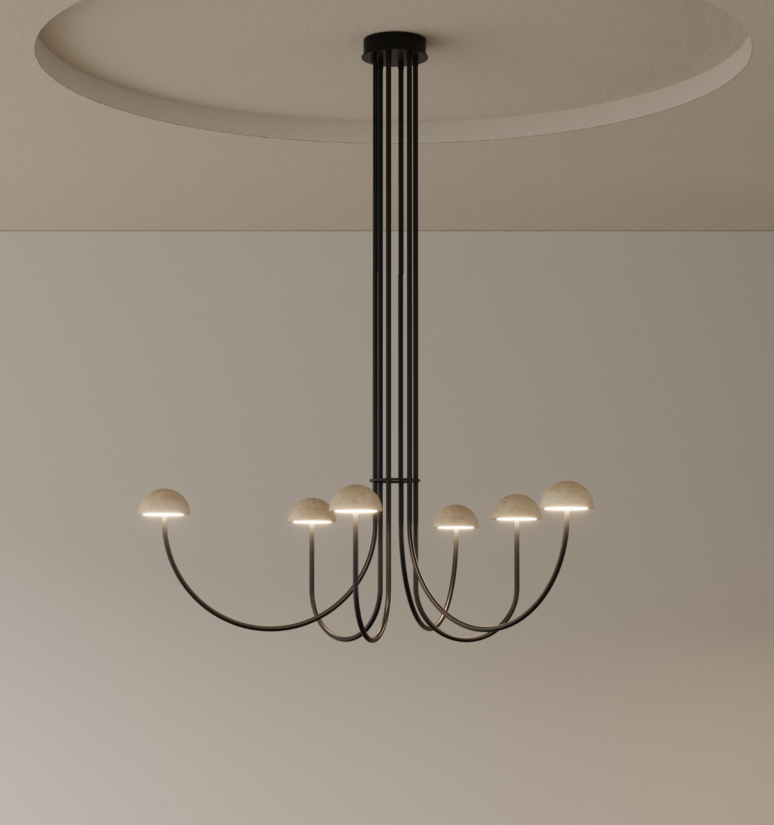 Подвесной светильник Dussa 6L черный металл / Travertine
