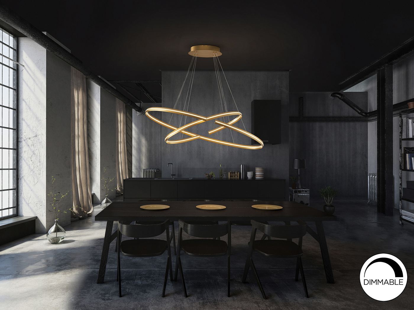 Потолочный светильник со светодиодной подсветкой, состоящий из двух эллипсов из металла и алюминия с отделкой под полированное золото. Рассеиватель из опалового акрила. ЗАТЕМНЕНИЕ по BLUETOOTH с помощью ПРИЛОЖЕНИЯ для смартфона. Светодиод 103 Вт, 4144 лм, 3000 К. Включает светодиодный драйвер с диммером Bluetooth для использования через мобильное приложение или планшет. Также через интеллектуальный динамик, такой как Google Home или Amazon Echo, если добавлено устройство Bluetooth Gateway. Он несовместим с настенным регулятором.