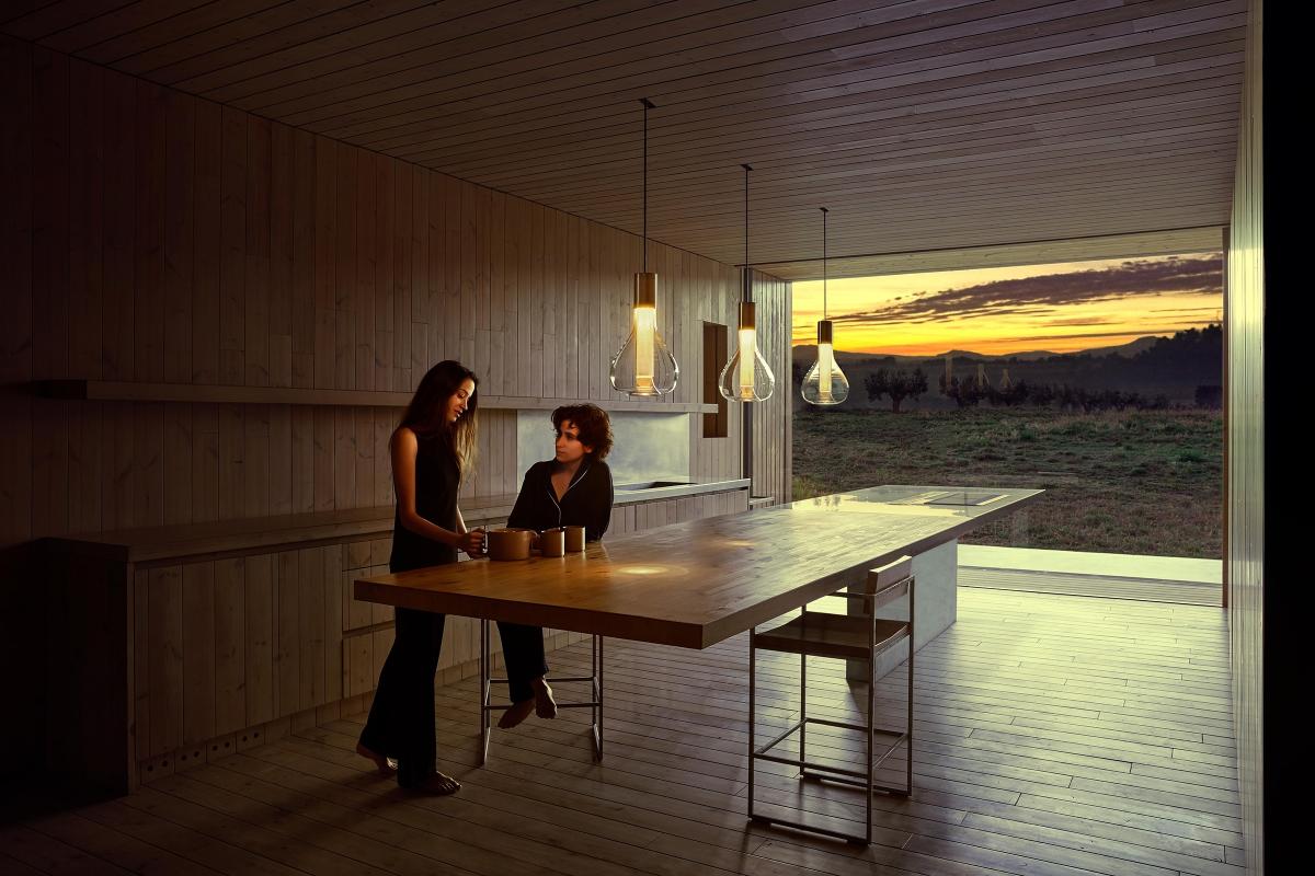Eris обладает абстрактной и неземной красотой, похожей на одноименную планету. Разработанный студией Mayice Studio, Eris состоит из нескольких компонентов: оригинального шара из боросиликатного стекла, выдуваемого вручную мастером-стеклодувом Эдуардо Гарути, деревянной шпонированной трубки (содержащей светодиодный источник света) и металлической основы. Доступный как настольная лампа, так и подвесная лампа, Eris возвышенна. Сияющая, когда свет включен, и декоративная, когда выключен, Eris обладает эфирностью, которая захватывает идеальный симбиоз стекла и дерева.