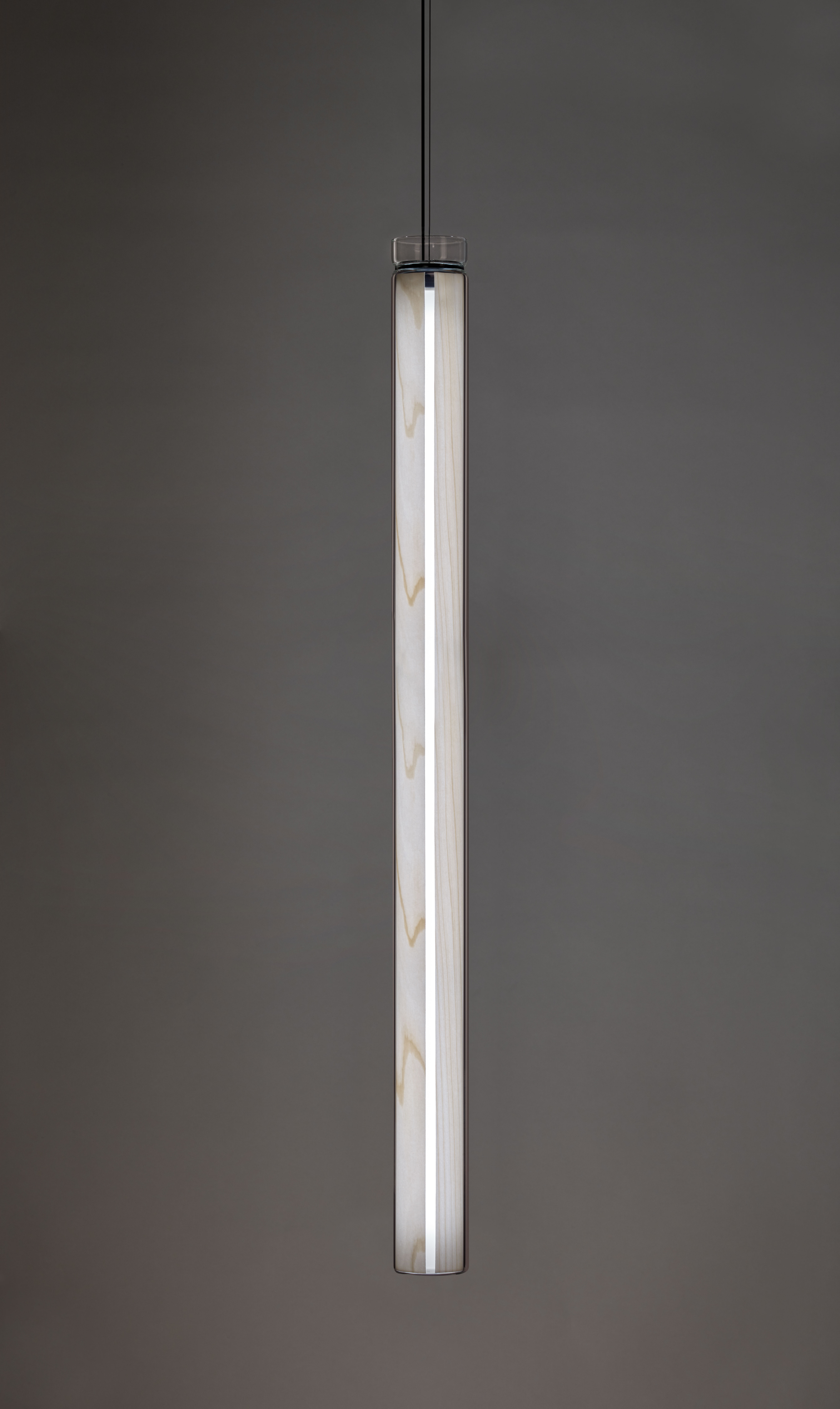 Estela-это пленительная капсула света. В Estela студия May ice разработала чистый, прозрачный, цельный кусок боросиликатного стекла. Вручную выдуваемое опытным мастером Эдуардо Гарути стекло окружает цилиндрический диффузор из шпона дерева. Деревянный шпон содержит диммируемый светодиодный источник света, а прямое отверстие с одной стороны излучает нисходящий свет, который смягчается стеклом. Предлагая бесшовное соединение между стеклом и деревом, Estela-это сияющая лампа с небесным качеством. Подобно Дюне, естественные недостатки Estela, характерные для выдувного стекла ручной работы, добавляют ему тепла и элегантности. Каждая лампа подписана мастером Эдуардо Гарути.