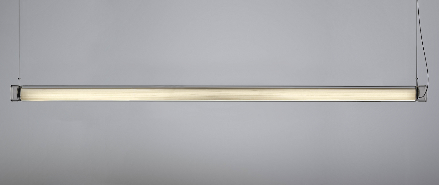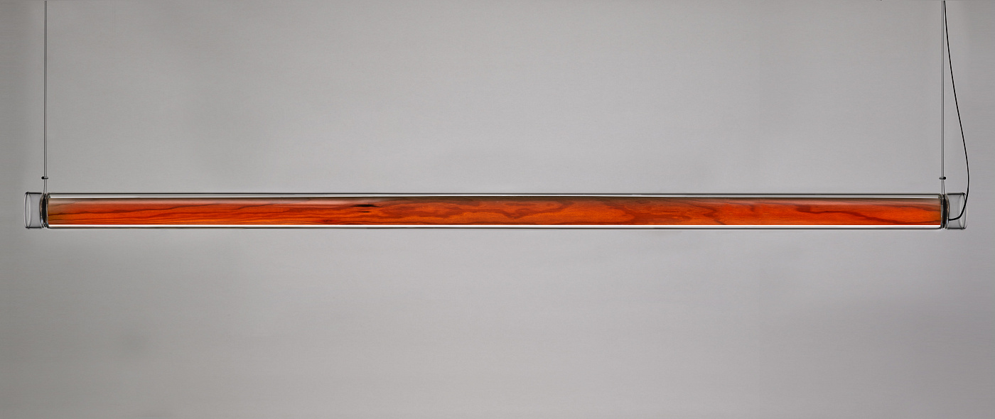 Estela-это пленительная капсула света. В Estela студия May ice разработала чистый, прозрачный, цельный кусок боросиликатного стекла. Вручную выдуваемое опытным мастером Эдуардо Гарути стекло окружает цилиндрический диффузор из шпона дерева. Деревянный шпон содержит диммируемый светодиодный источник света, а прямое отверстие с одной стороны излучает нисходящий свет, который смягчается стеклом. Предлагая бесшовное соединение между стеклом и деревом, Estela-это сияющая лампа с небесным качеством. Подобно Дюне, естественные недостатки Estela, характерные для выдувного стекла ручной работы, добавляют ему тепла и элегантности. Каждая лампа подписана мастером Эдуардо Гарути.