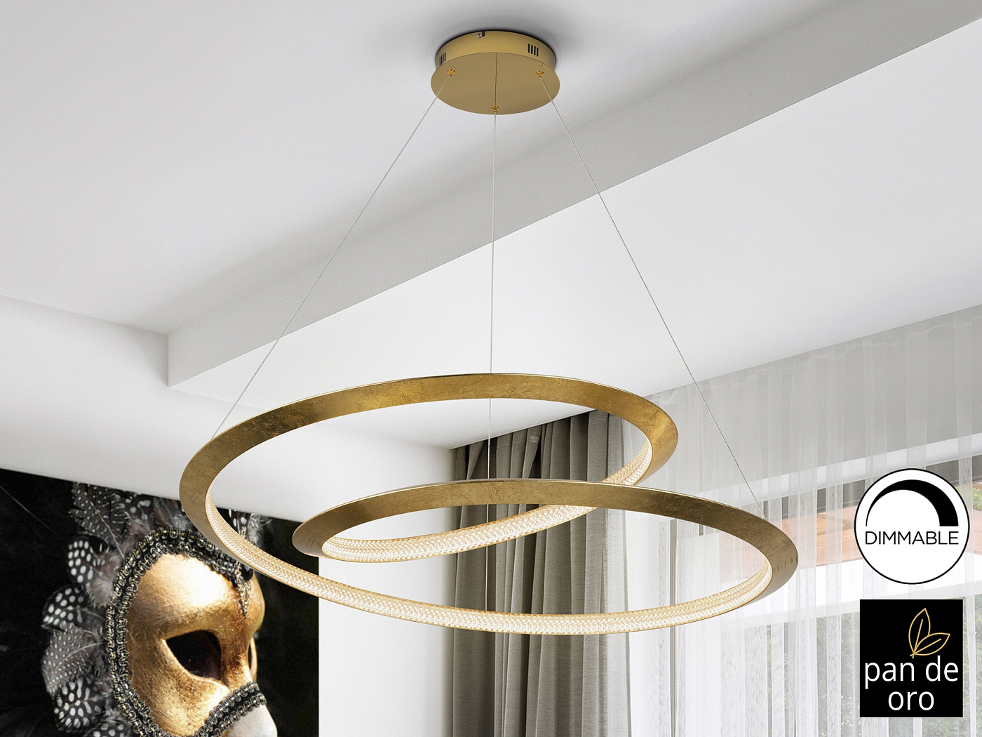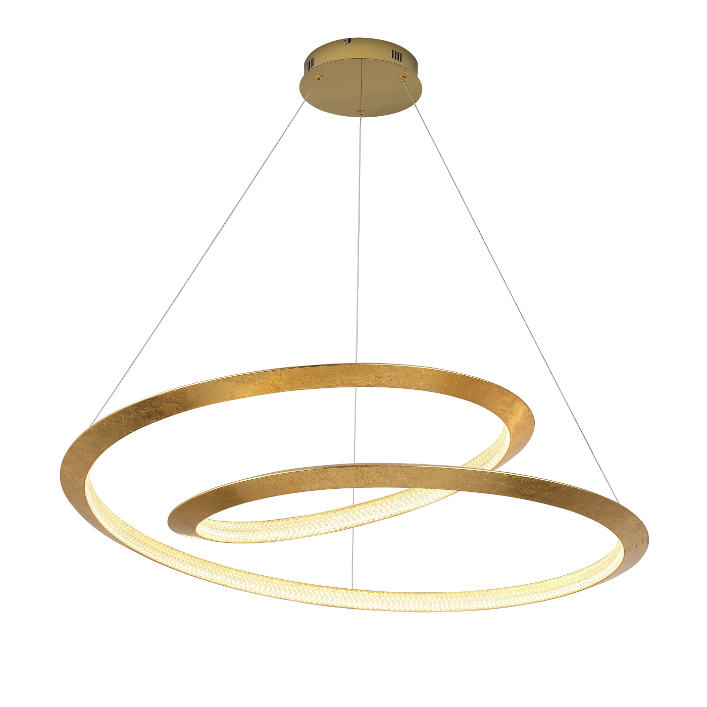 Лампа изготовлена из металла, с изогнутым краем, отделанным золотыми листьями, и золотым куполом. Рассеиватель из прозрачных акриловых деталей. Светодиод мощностью 64 Вт. 3588 лм. 3000 К. Этот продукт включает в себя светодиодные драйверы с затемнением 0–10 В. Для использования с настенным выключателем используйте диммеры только этого типа. Любое другое может повредить светодиодный драйвер. · Эта лампа оснащена ГРАВИТАЦИОННЫМИ ПЕРЕКЛЮЧАТЕЛЯМИ для улучшения крепления к потолку.