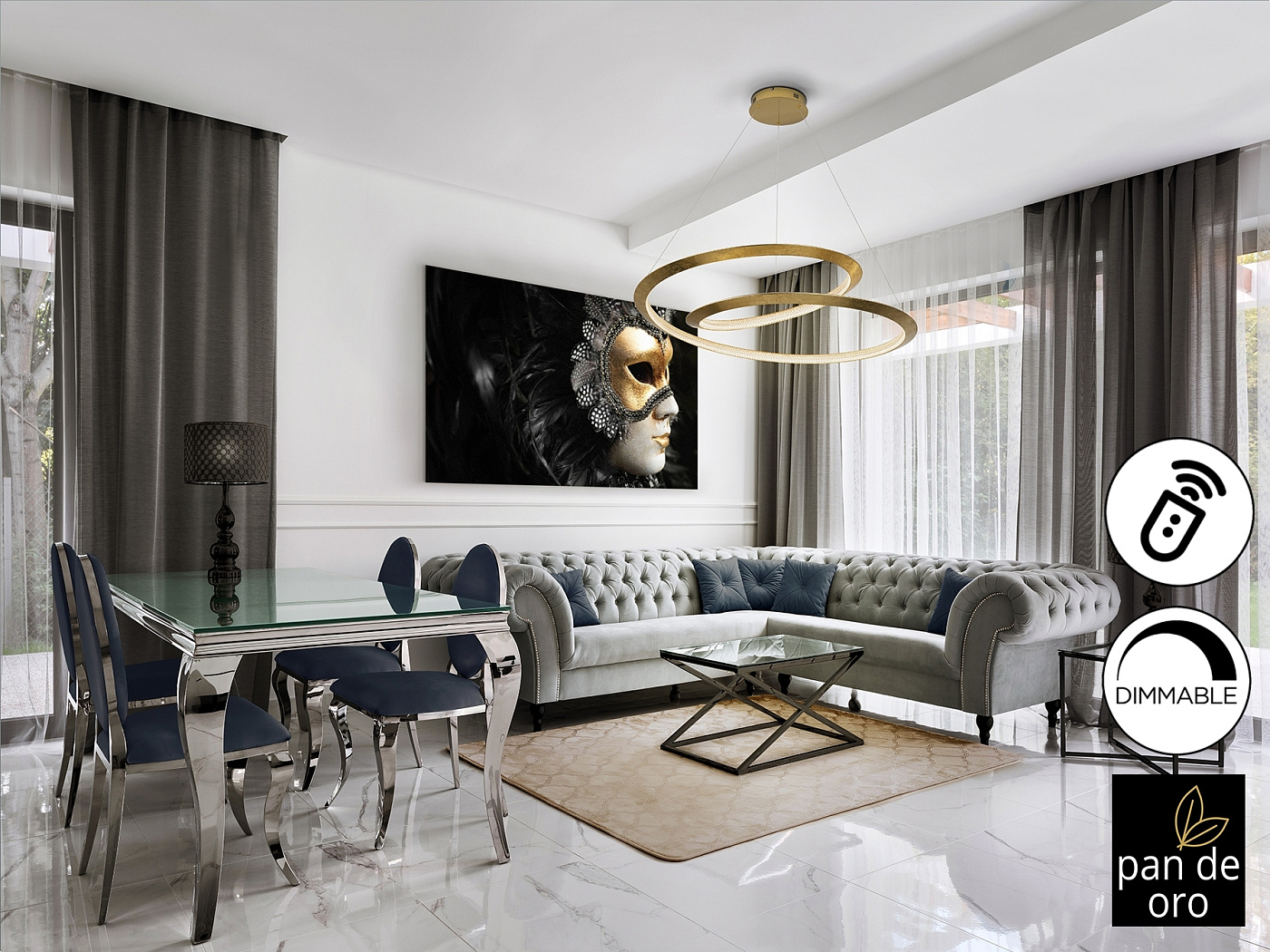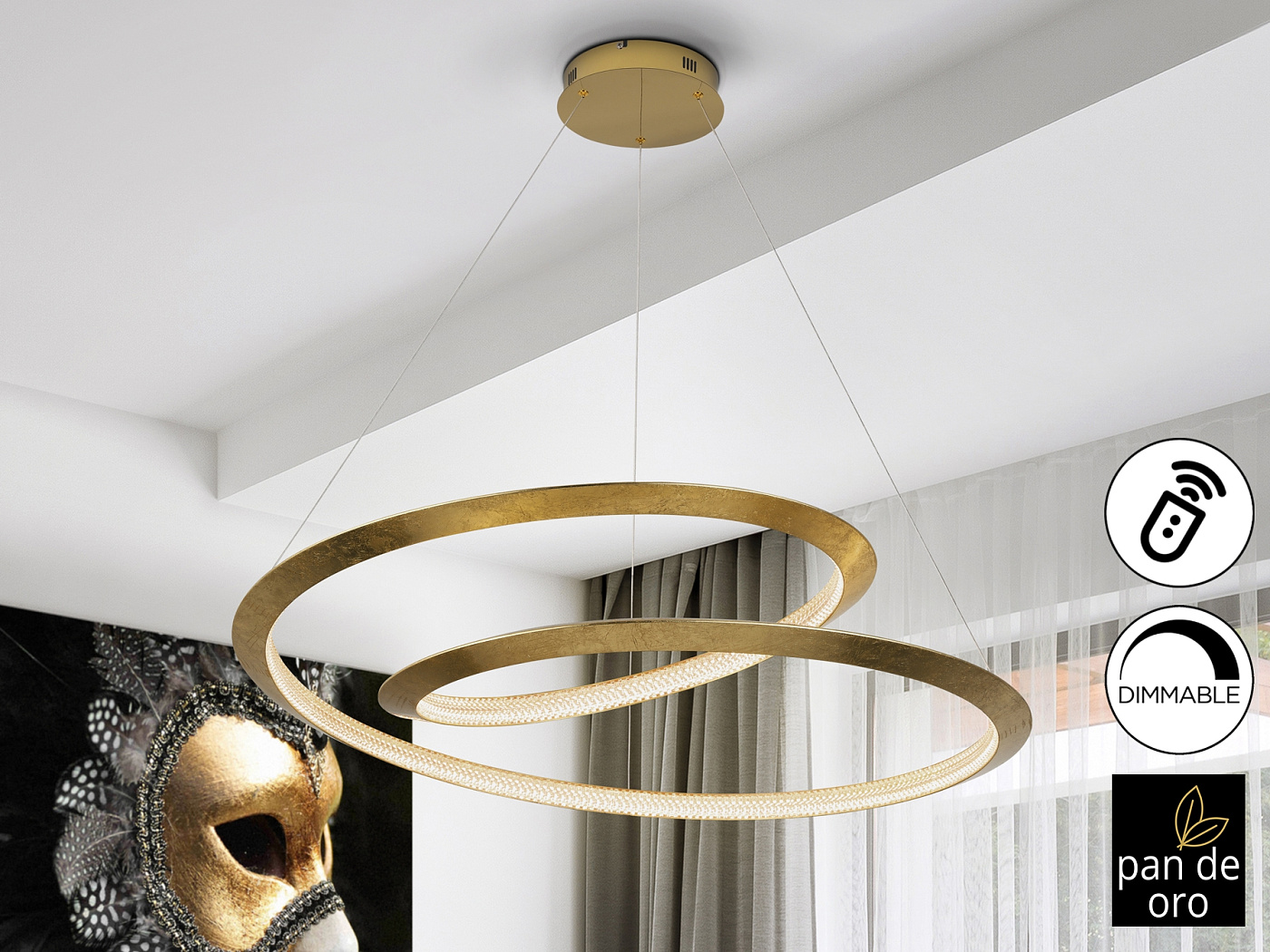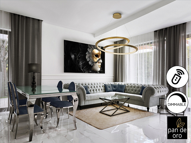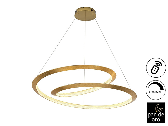 Лампа изготовлена из металла, с изогнутым краем, отделанным золотыми листьями, и золотым куполом. Рассеиватель из прозрачных акриловых деталей. Светодиод мощностью 64 Вт. 3588 лм. 3000 К. С РЕГУЛИРОВКОЙ Этот продукт включает в себя светодиодные драйверы с затемнением 0–10 В. Для использования с настенным выключателем используйте диммеры только этого типа. Любой другой может повредить светодиодный драйвер.