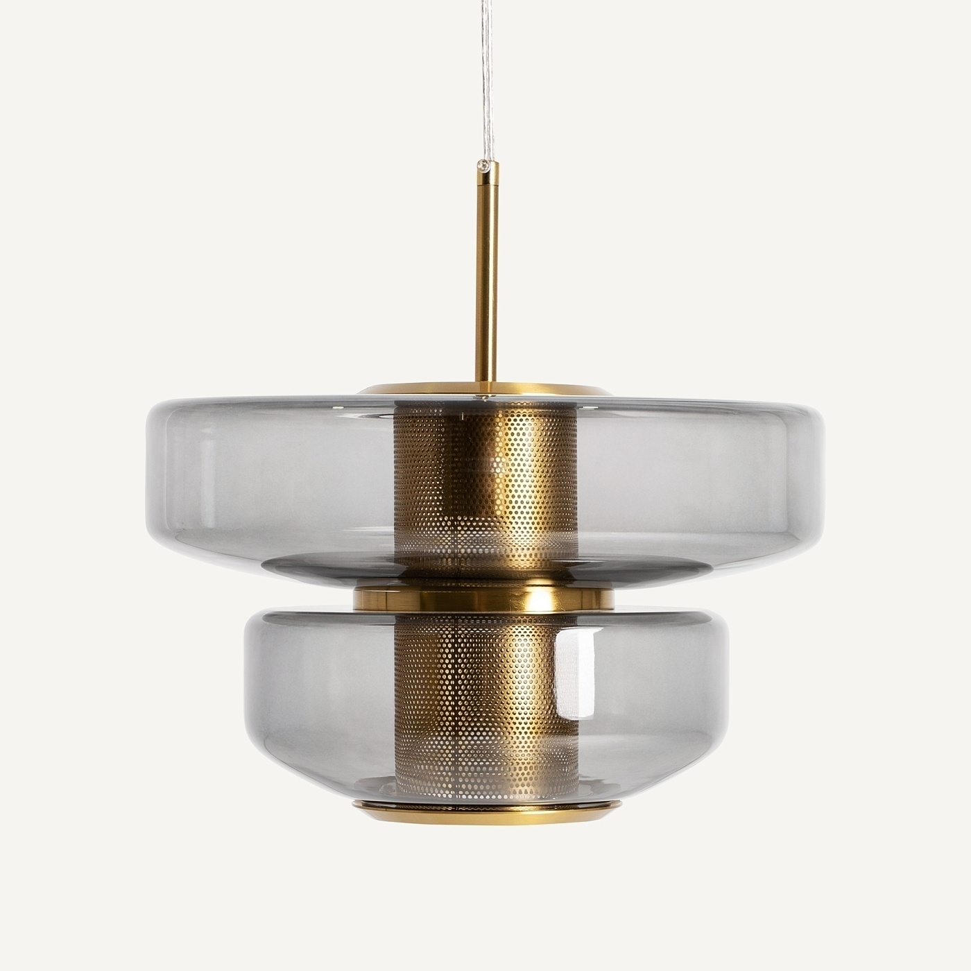 Подвесной светильник Gala в стиле ар-деко, выполнен из серого стекла с полупрозрачной отделкой в сочетании с золотистым железом. Изделие разборное. Ширина: 35 см, Глубина: 35 см, Высота: 35 см