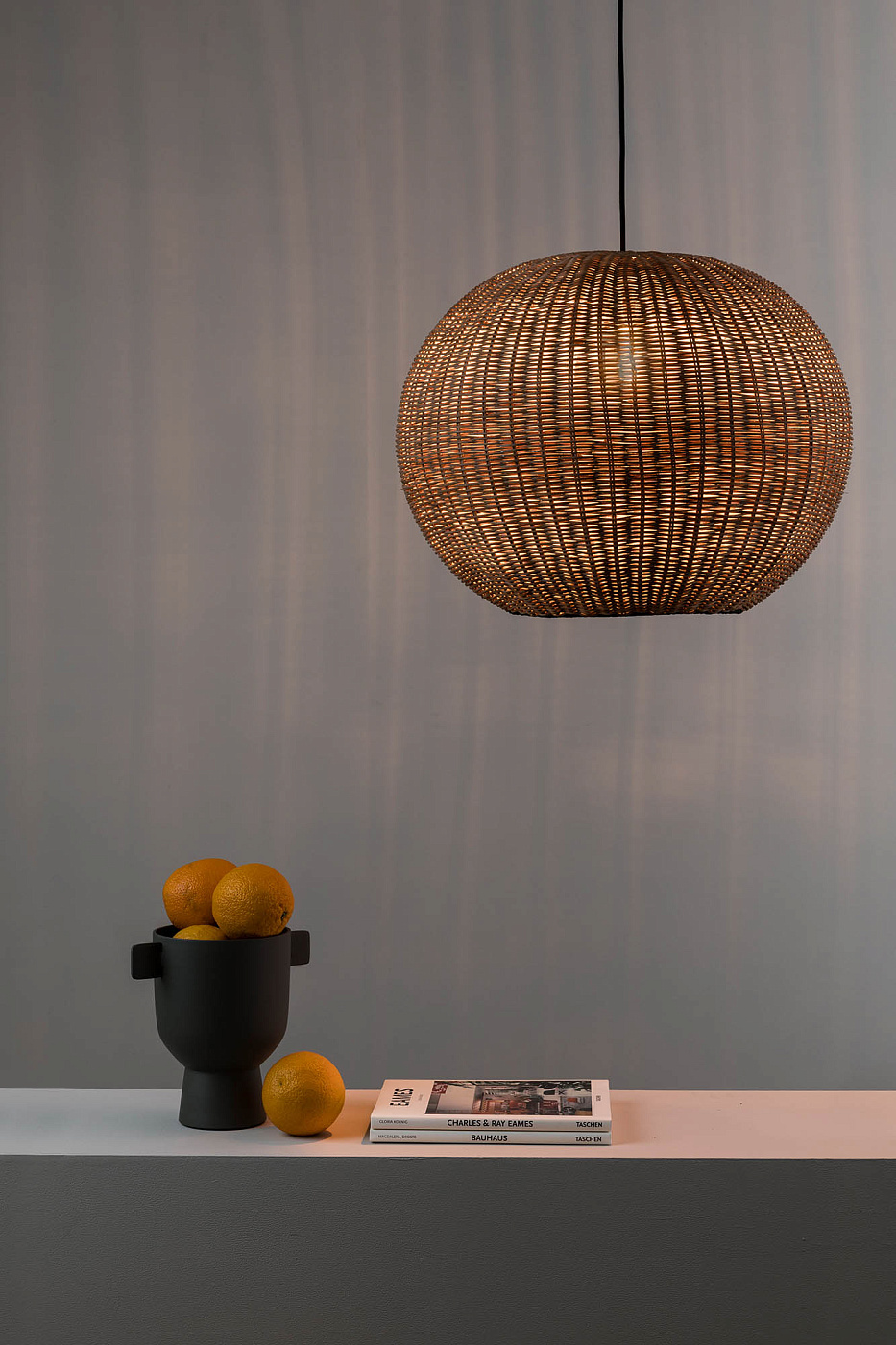 HAKA — круглый подвесной светильник в средиземноморском стиле. Свет проецируется через ротанг абажура, неожиданно красивый эффект. Он предназначен для освещения спален и гостей и является хорошим выбором для отелей. Версия с абажуром 530 мм.