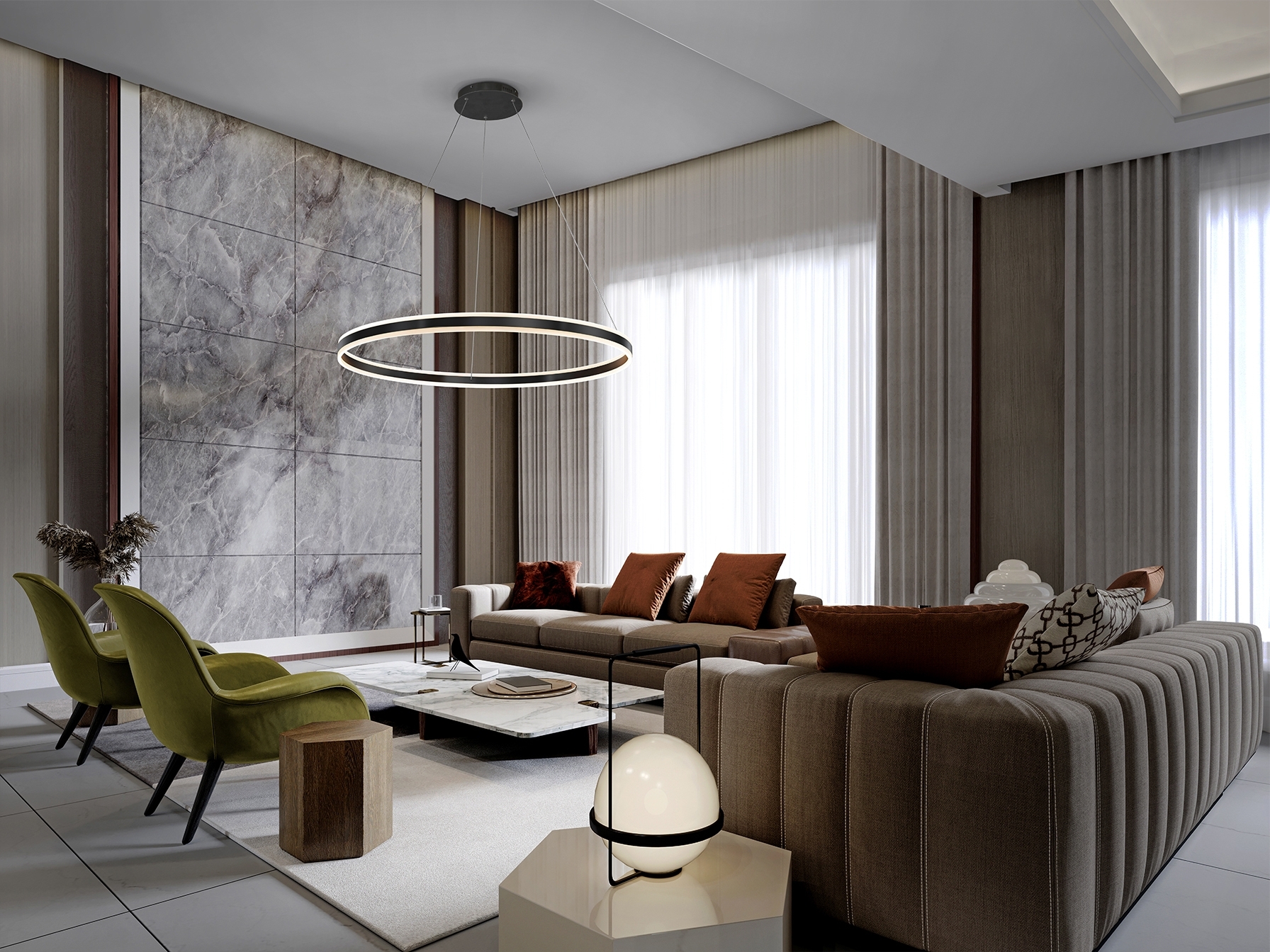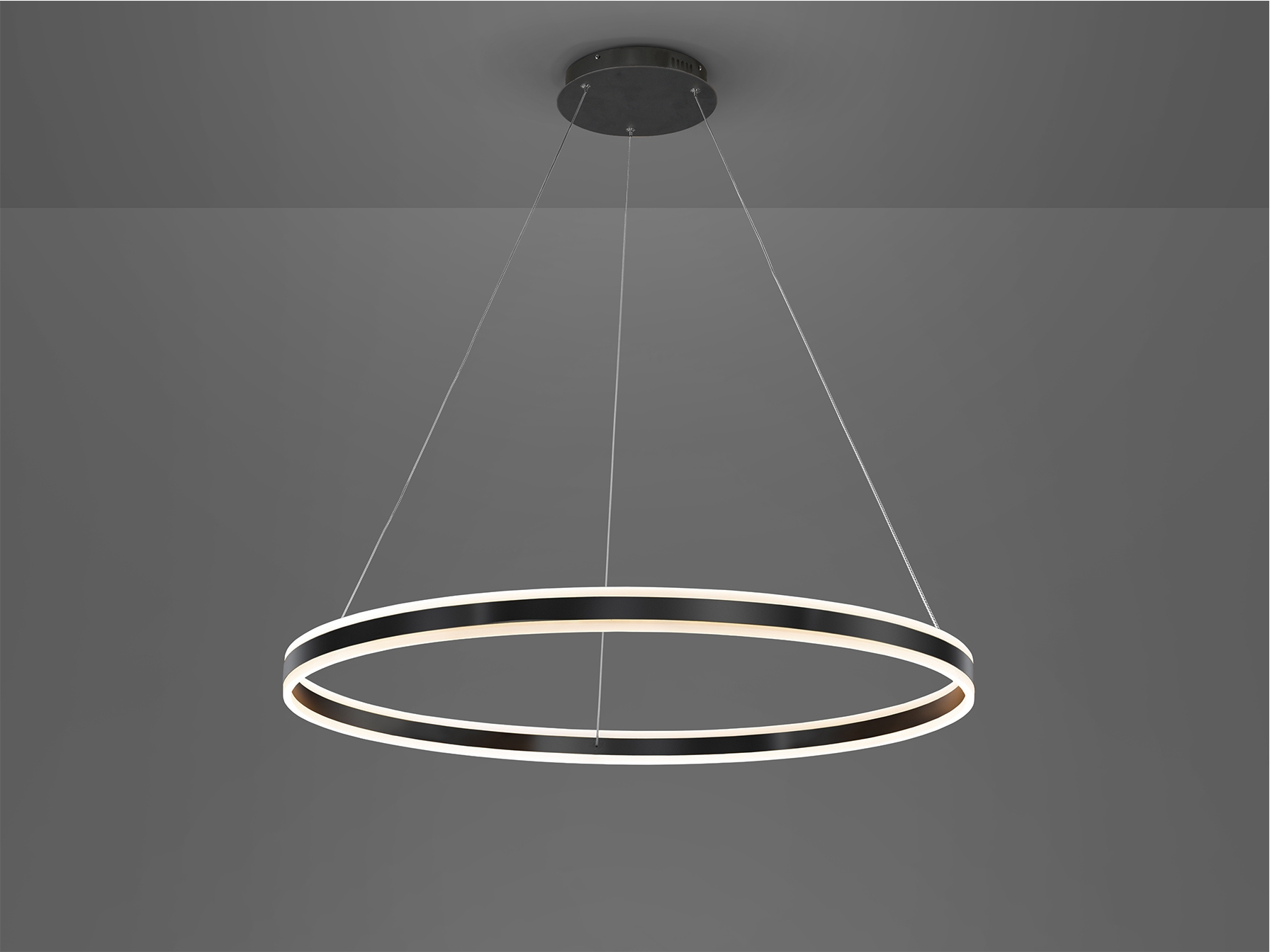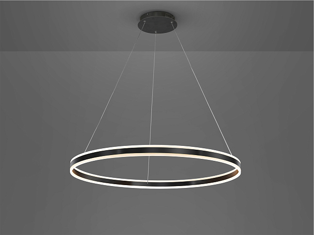Лампа из металла и алюминия, матовая черная отделка. Кольцо с рассеивателем из опалового акрила. Регулируемая высота. Светодиод 110Вт 3000К. 6600 лм