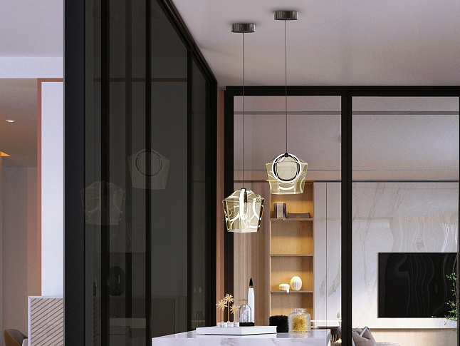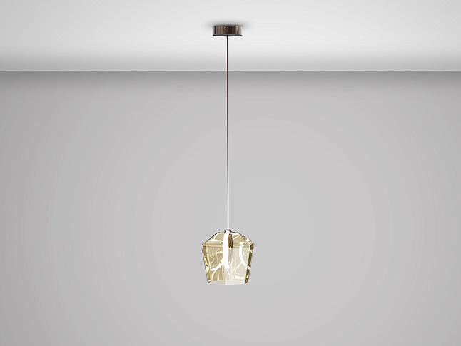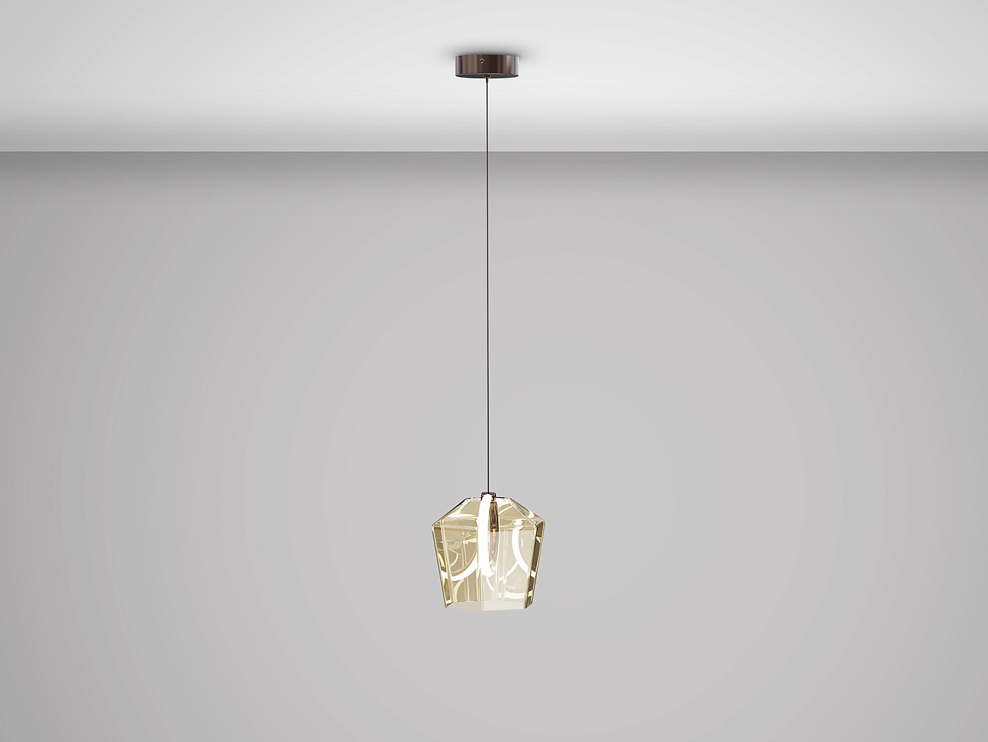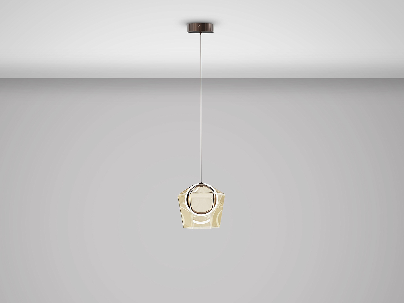 Лампа на 1 лампу из матового алюминия, окрашенного в темно-бронзовый тон. Абажур из тонированного стекла цвета шампанского с внутренним светодиодным кольцом и силиконовым рассеивателем. Светодиод 6 Вт, 161 лм, 3000 К · Эта лампа оснащена ГРАВИТАЦИОННЫМИ ПЕРЕКЛЮЧАТЕЛЯМИ для улучшения фиксации на потолке.