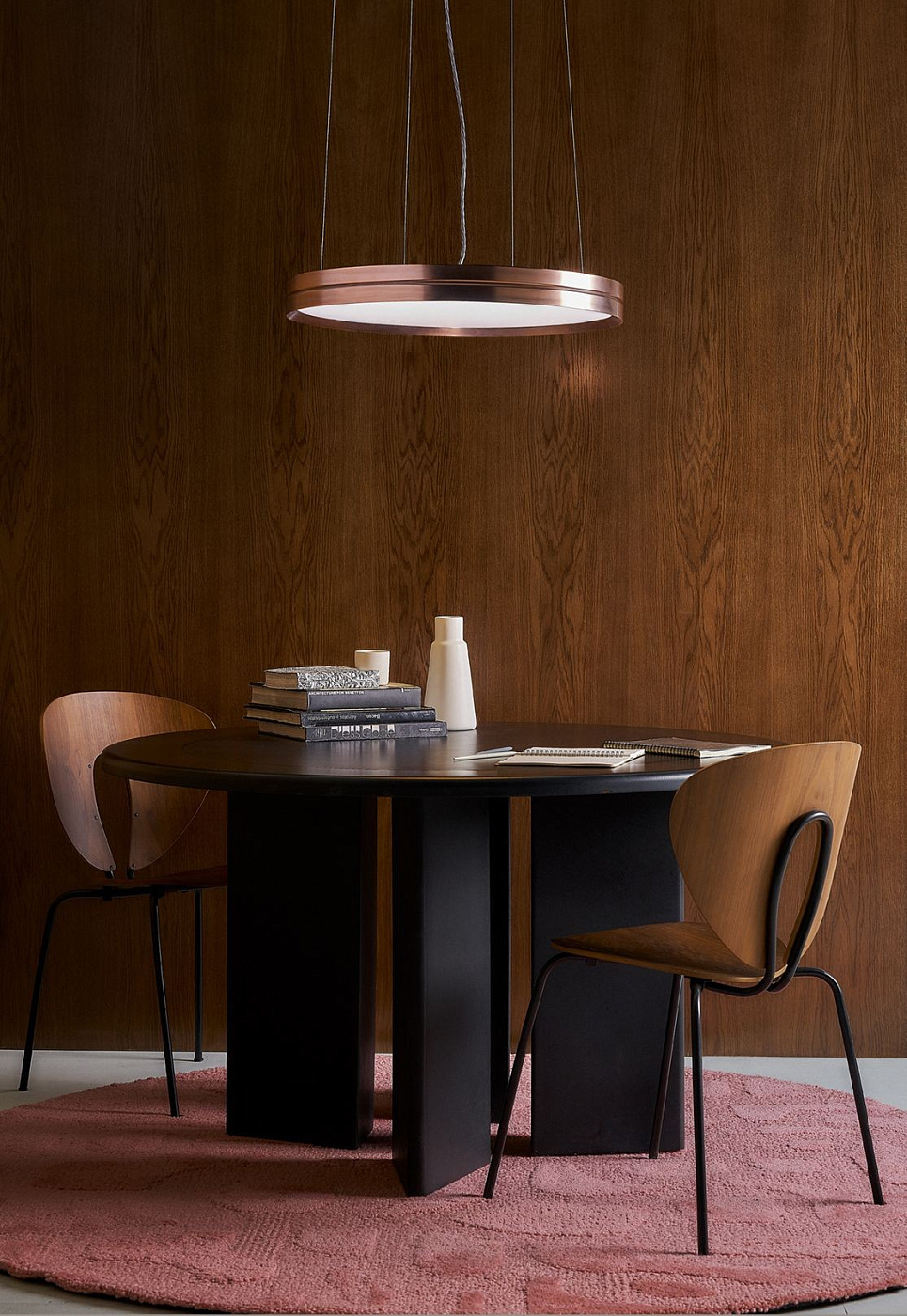 Подвесной светильник, состоящий из двух концентрических алюминиевых колец, образующих круглый световой корпус минимальной высоты. Изготавливается в больших форматах, диаметром 120 и 90 сантиметров, а также 60 сантиметров. Все они имеют опаловый акриловый рассеиватель, скрывающий светодиодный источник света прямого и регулируемого излучения, характеризующийся полным отсутствием бликов. Lite Hole доступен в матовом белом, матовом черном, медном и золотом цветах.