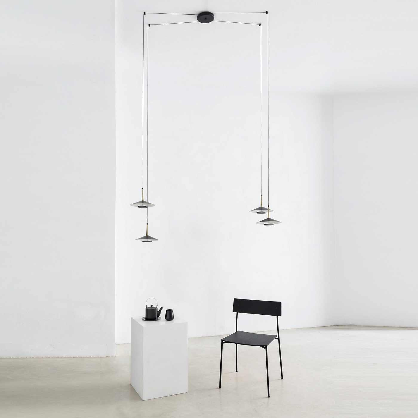 Утонченные подвесные светильники ORION спроектированы Хьюго Теджада, который был вдохновлен одноименным созвездием Орион и другими образами небесных тел. Светильники коллекции безупречно впишутся в минималистичное пространство и станут идеальным дополнением для интерьера с использованием растений и отсылками к восточной культуре. ORION создаст современную и утонченную атмосферу в квартире и чувство приватности и уюта в пространстве ресторана или кафе. Форма светильников коллекции образует яркие световые диски, которые уравновешены черными металлическими пластинами. Латунная деталь завершает форму и ведет к тонкому и эстетичному черному тросу. Эта деталь придает контраста и уникальности дизайну ORION. Подвесные системы представлены в вариациях одного, двух или четырех светильников. Кастомизированная система подвески позволяет удовлетворить индивидуальные задачи интерьерной планировки.