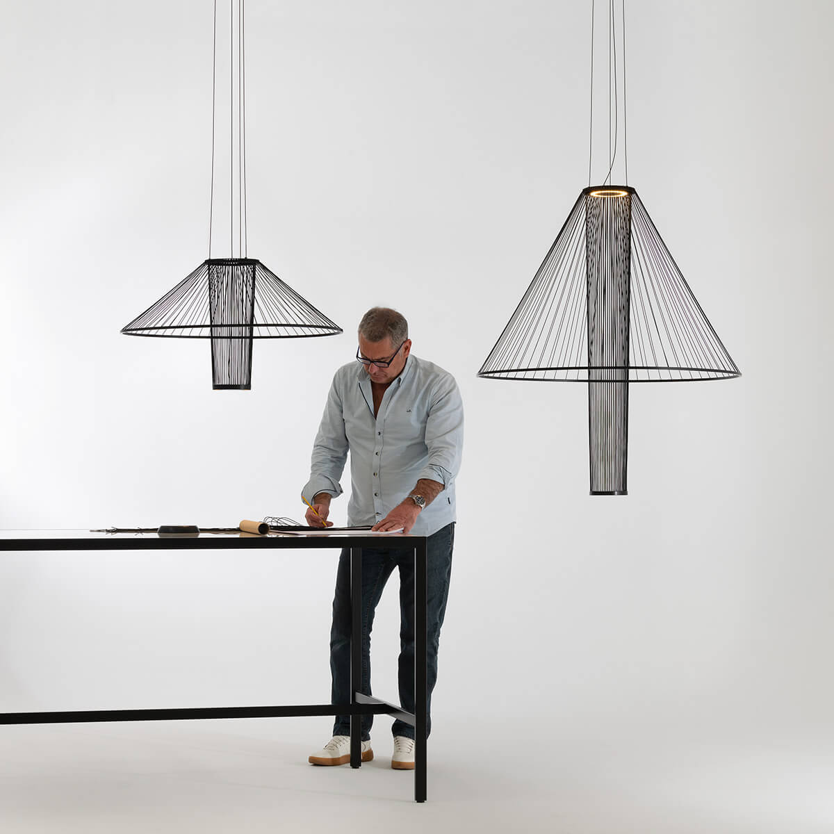 Подвесной светильник сменного дизайна, изготовленный из переработанного шнура. Длина 100 см и два варианта диаметра, 80 см или 100 см. MEDUSA меняет форму, поднимая или опуская свои кольца. Играйте с объемами и высотами простым движением и меняйте дизайн вашего светильника, когда захотите.