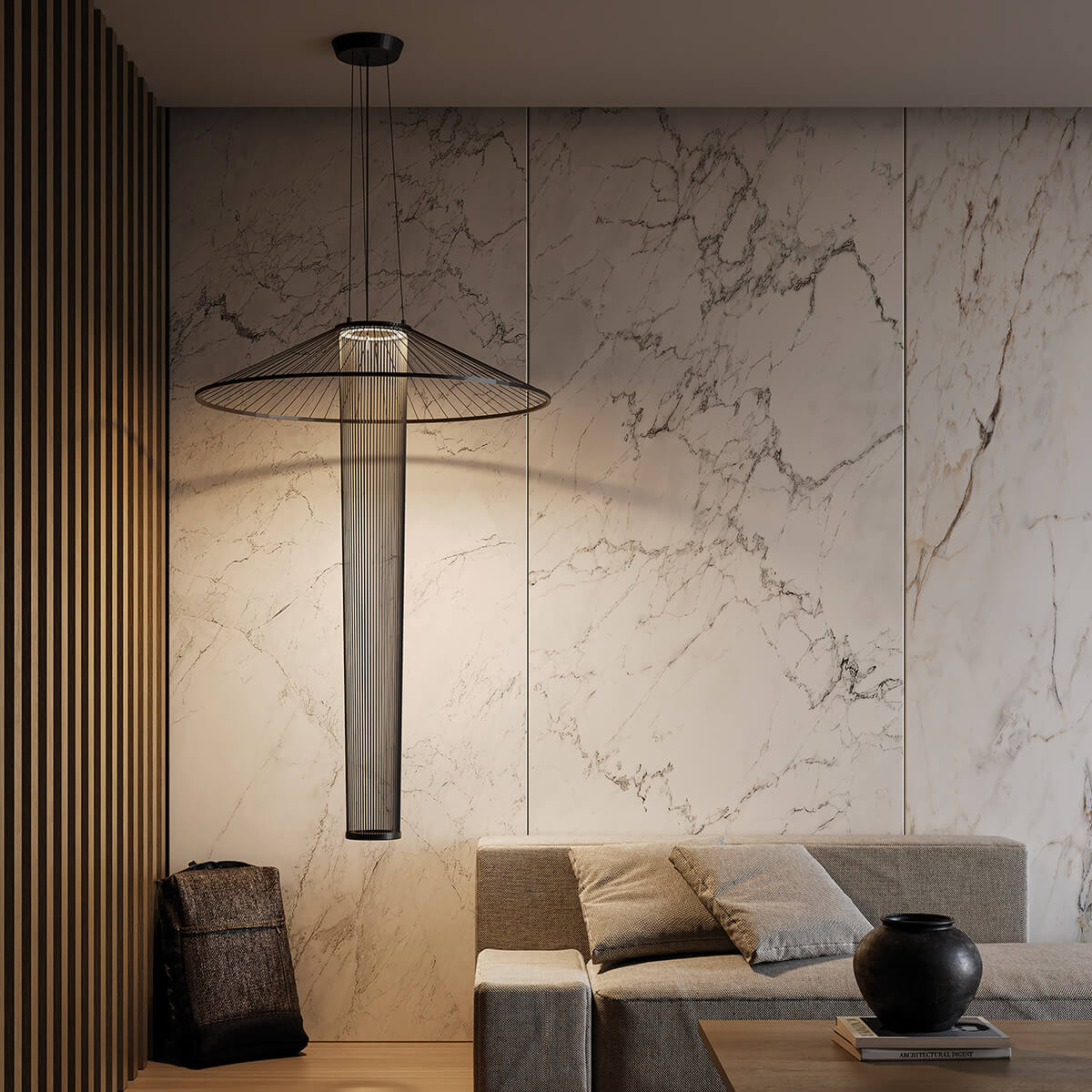 Подвесной светильник сменного дизайна, изготовленный из переработанного шнура. Длина 200 см и два варианта диаметра, 80 см или 100 см. MEDUSA меняет форму, поднимая или опуская кольца. Играйте с объемами и высотами простым движением и меняйте дизайн вашего светильника, когда захотите.