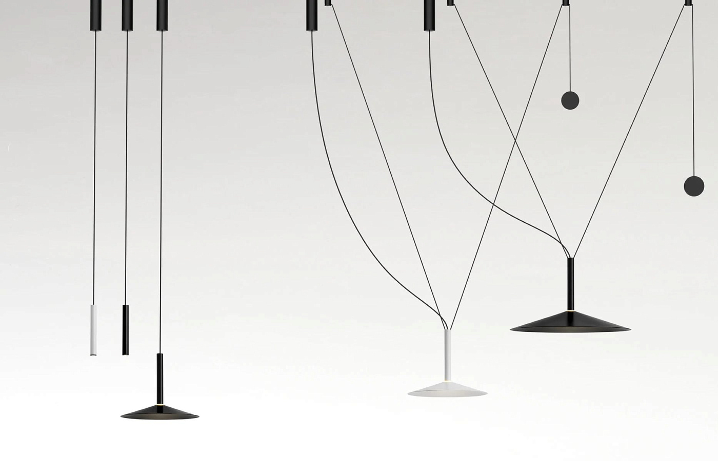 Перемещение точки света - вот идея, лежащая в основе нового дизайна Хауме Рамиреса. Milana представляет собой систему модульных подвесных светильников, которые сочетаются друг с другом и могут перемещаться как вертикально, так и горизонтально. Парадоксально, но этот новый дизайн начинается с деконструкции архетипа лампы; максимально синтезируя его, остается только цилиндрический корпус со встроенным светодиодом. К этому цилиндру мы можем добавить различные конусообразные плафоны в устрично-белом и черном цветах нескольких размеров. Но самым оригинальным из всего этого является то, что каждая из этих ламп может иметь простой противовес, так что, когда они подвешены между двумя точками, их можно перемещать.