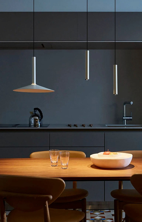 Перемещение точки света - вот идея, лежащая в основе нового дизайна Хауме Рамиреса. Milana представляет собой систему модульных подвесных светильников, которые сочетаются друг с другом и могут перемещаться как вертикально, так и горизонтально. Парадоксально, но этот новый дизайн начинается с деконструкции архетипа лампы; максимально синтезируя его, остается только цилиндрический корпус со встроенным светодиодом. К этому цилиндру мы можем добавить различные конусообразные плафоны в устрично-белом и черном цветах нескольких размеров. Но самым оригинальным из всего этого является то, что каждая из этих ламп может иметь простой противовес, так что, когда они подвешены между двумя точками, их можно перемещать.