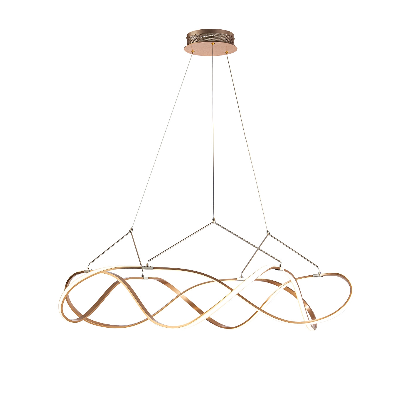 Подвесной светильник LED из алюминия с золотистым покрытием с хромированными элементами. Силиконовые рассеиватели опалового цвета, с регулируемой высотой. 63W LED, 5670 Lm, 3000 K. Диммируемый.