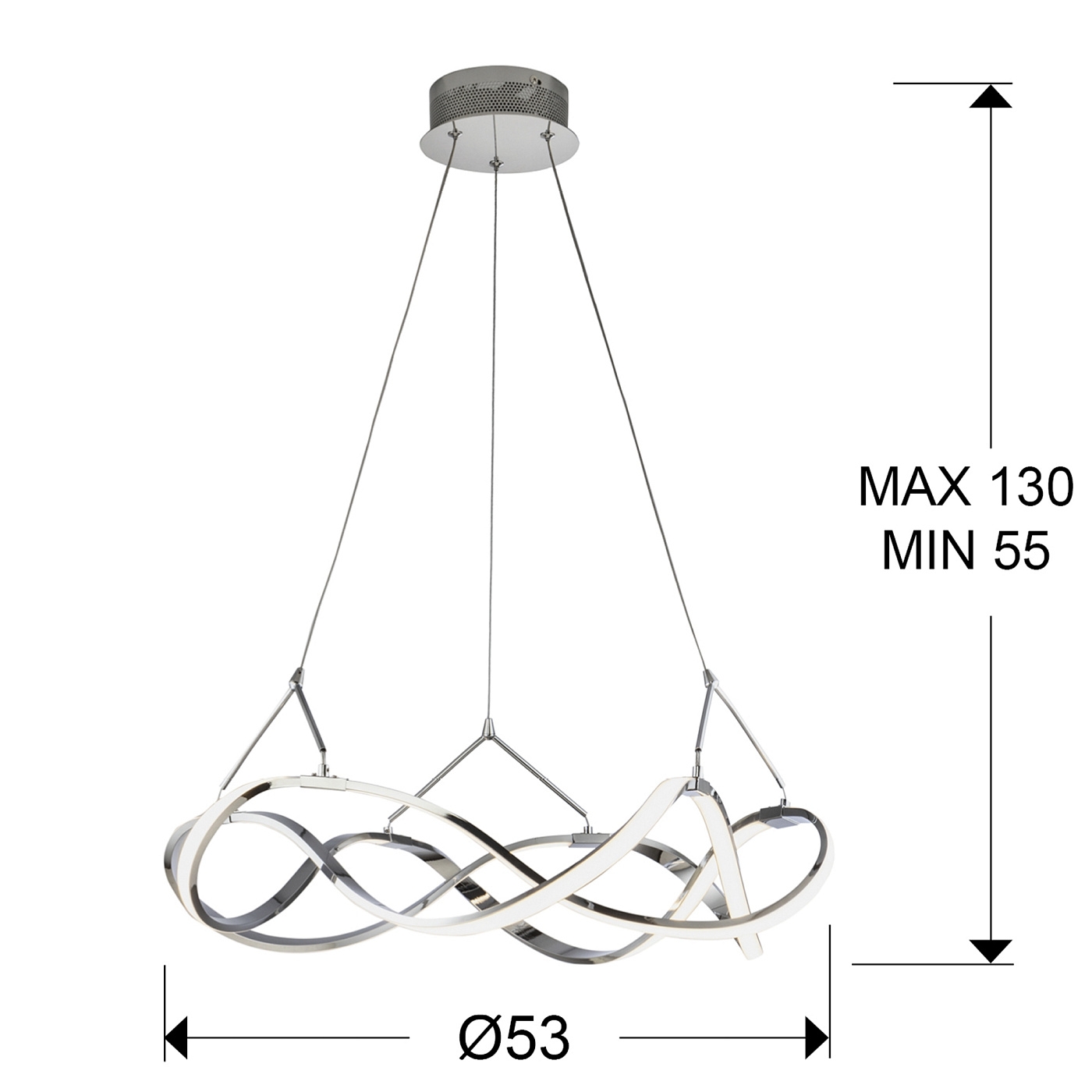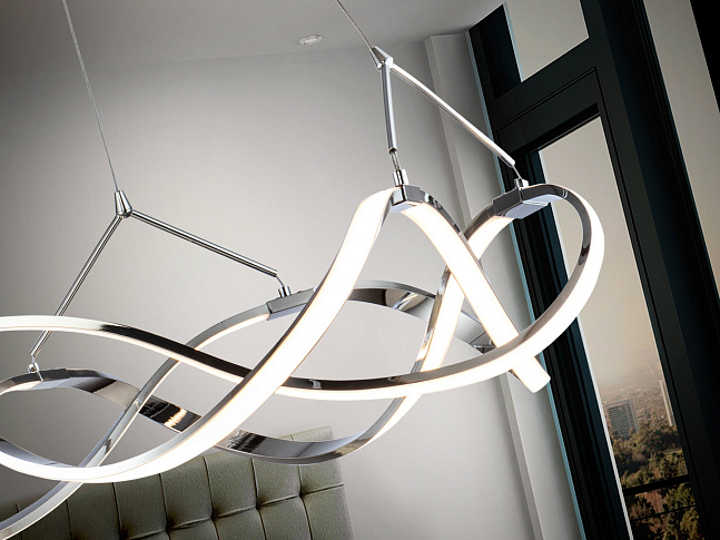 Подвесной светильник LED из аллюминия с хромированным покрытием. Акриловые рассеиватели опaлового цвета. С регулируемой высотой. 30W LED, 2700 Lm, 3000 K. Диммируемый.