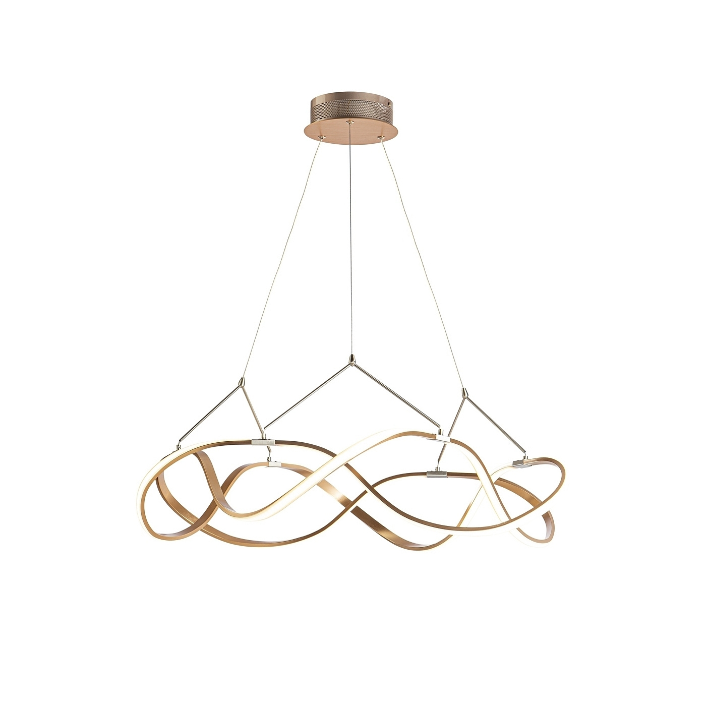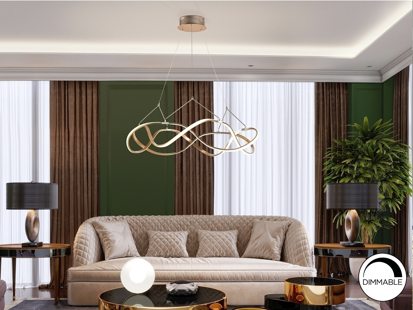 Подвесной светильник LED из алюминия с золотистым покрытием с хромированными элементами. Силиконовые рассеиватели опалового цвета, с регулируемой высотой. 45W LED, 4050 Lm, 3000 K. Диммируемый.