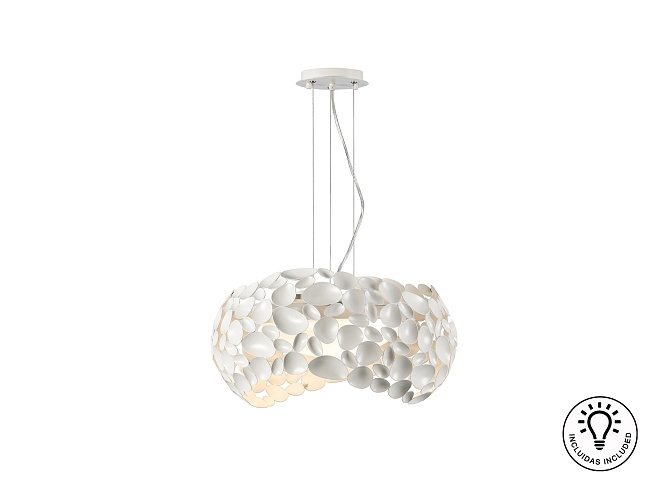Подвесной светильник с 5 лампами, из металла с матовым белым лаковым покрытием, акриловый рассеиватель внутри, с регулируемой высотой. Включает 5 светодиодов G9 мощностью 6 Вт.