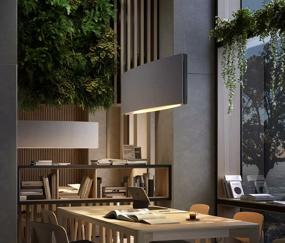 Noren получил свое название от кусочков ткани, которые традиционно использовались в качестве занавесок в японских домах, чтобы разделить различные области, заменяя стены, двери или окна. Вдохновленные этой японской традицией, Noren представляют собой легкие декоративные световые конструкции со звукопоглощающими панелями, которые в сочетании друг с другом помогают координировать пространство за счет интеграции звука и света.