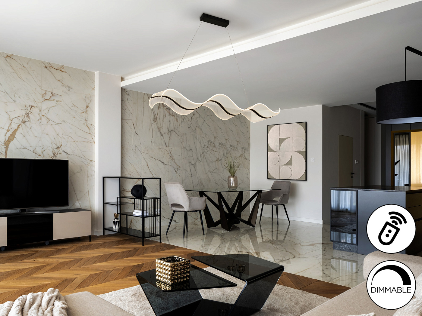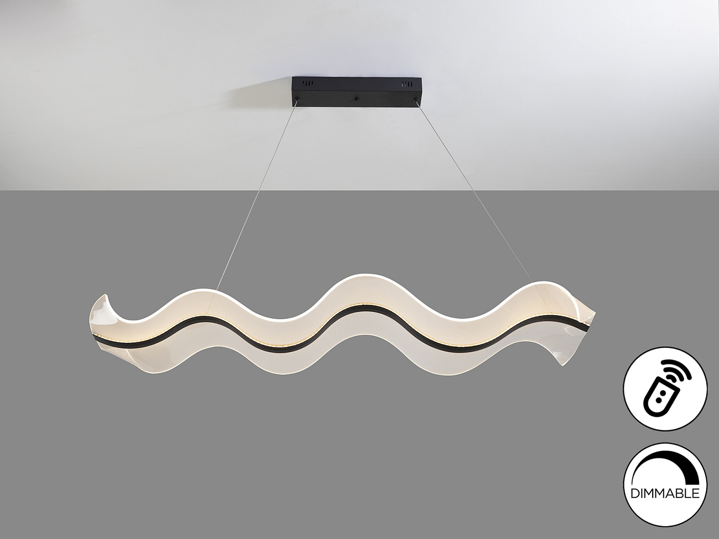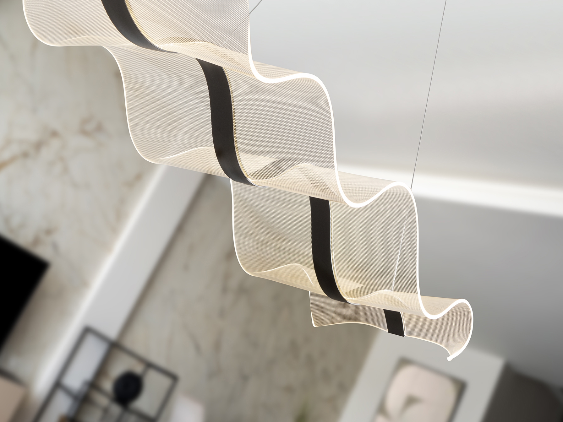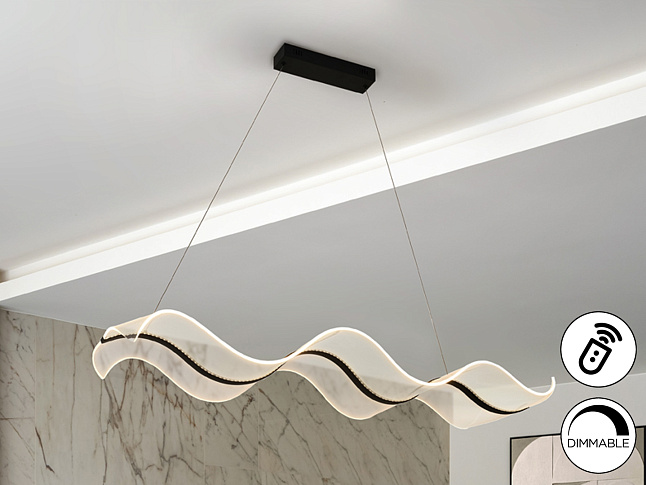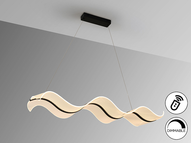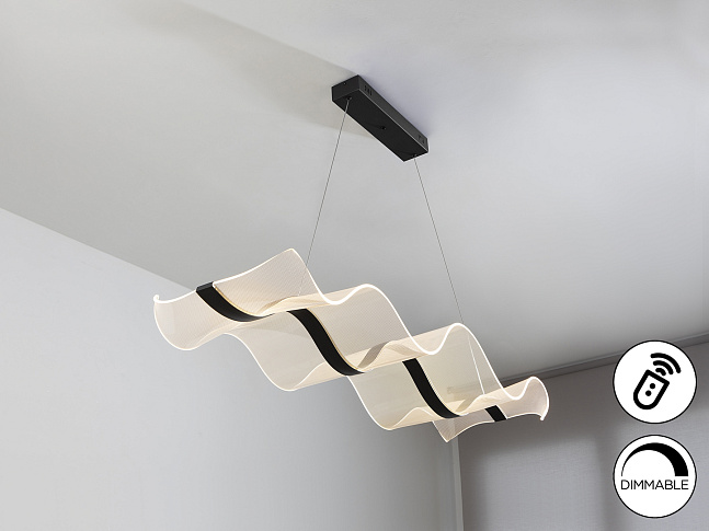 Лампа со светодиодной подсветкой, DIMADO и изменением цвета CCT. Изготовлена из стали и алюминия, матово-черная отделка. Формованные рассеиватели из метакрилата с микропечатью. Регулируется по высоте. Светодиодное освещение 40 Вт, 3100 лм, 2700-5500 К. В комплект входит пульт дистанционного управления. В этом изделии используется диммер и инфракрасный пульт дистанционного управления для регулировки интенсивности и цветовой температуры. · Эта лампа оснащена ГРАВИТАЦИОННЫМИ ПЕРЕКЛЮЧАТЕЛЯМИ для улучшения фиксации на потолке.