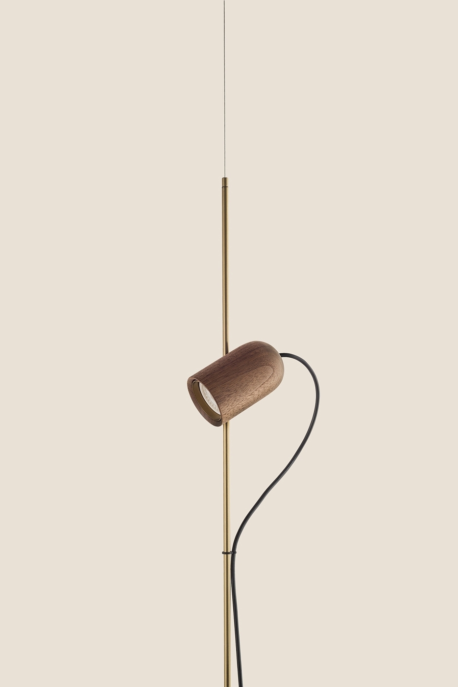 Элегантный подвесной светильник, сочетающий в себе теплоту дерева и изысканность металла. Изысканно простой дизайн. Этот дизайн сочетает в себе металлический корпус с латунной или графитовой отделкой с точечным светильником и маятником из дерева грецкого ореха, дуба или черного ясеня - материала, подчеркивающего естественность и теплоту света. Лампа воплощает в себе оригинальную идею на основе магнита, которая позволяет легко фокусировать и направлять свет.
