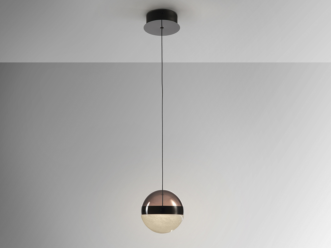Светодиодная лампа из металла, черного цвета. Абажур Ø15 см из дымчатого поликарбоната и мраморного стекла, с металлическим кольцом, черного хрома. Светодиод 9 Вт. 3.000 К. 418 лм. · Эта лампа оснащена ГРАВИТАЦИОННЫМИ ПЕРЕКЛЮЧАТЕЛЯМИ для улучшения фиксации на потолке.