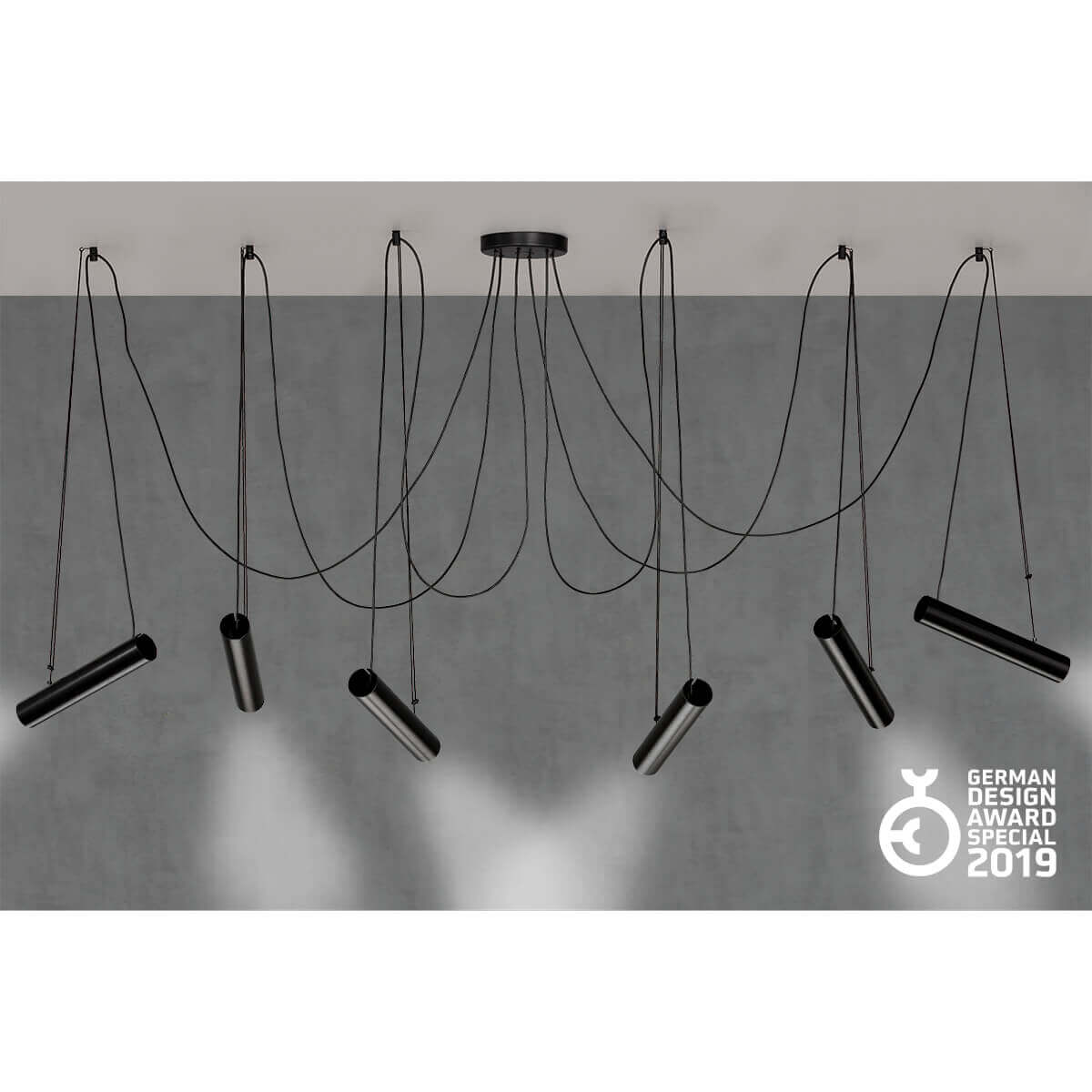 Лауреат премии "GERMAN DESIGN AWARD “в номинации” отличный дизайн продукта". Это алюминиевый цилиндрический прожектор, регулируемый голыми руками влево+вправо и вверх+вниз, чтобы фокусировать свет, когда/где это наиболее удобно, превращая пространство в полезные места в любое время.
