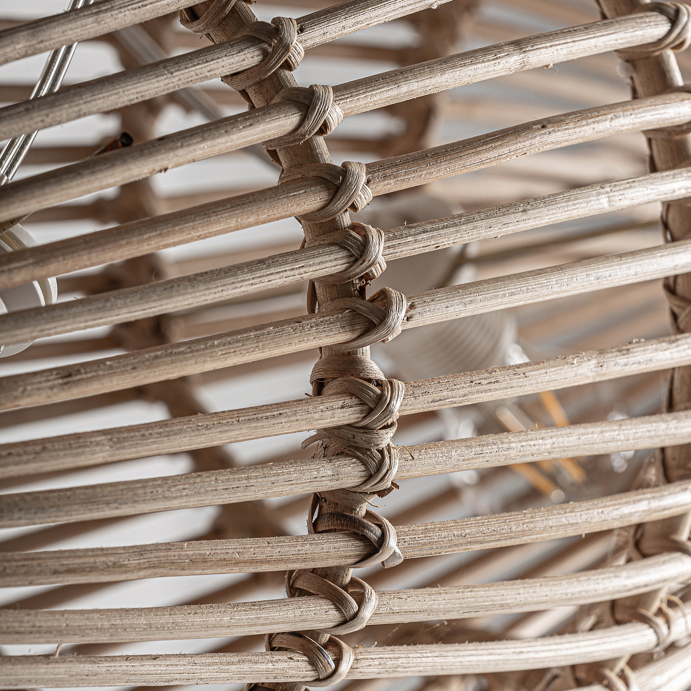 Подвесной светильник в стиле бохо в виде рыбы, изготовлен из коричневого ротанга.