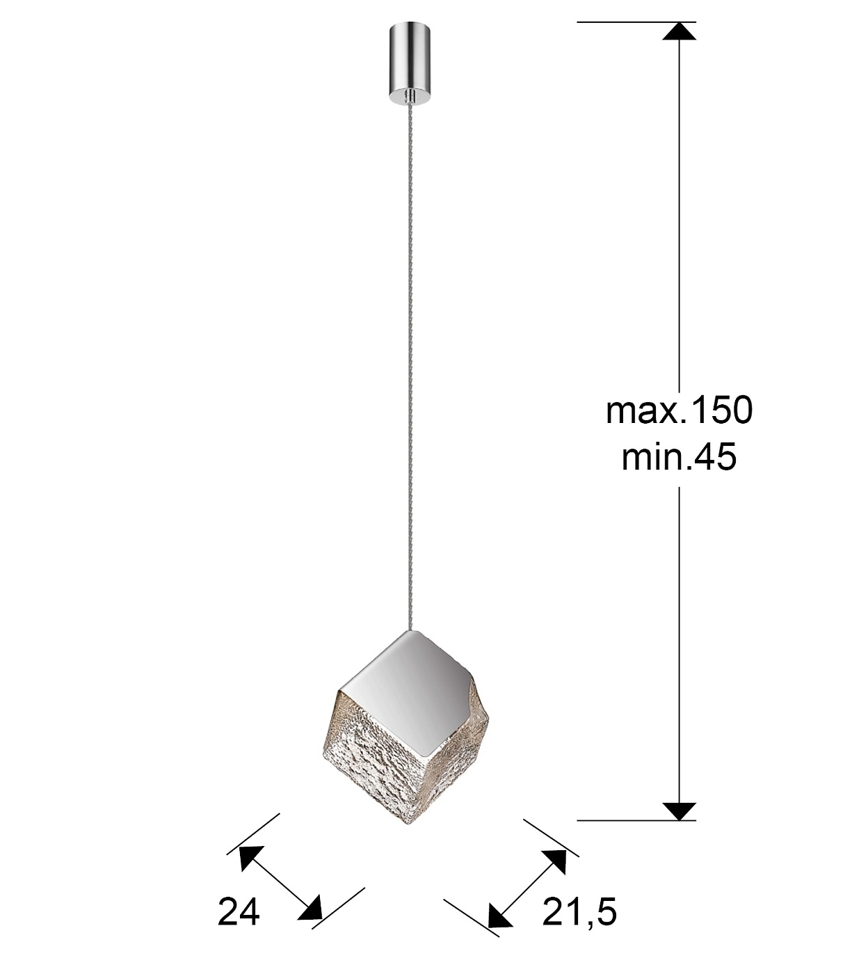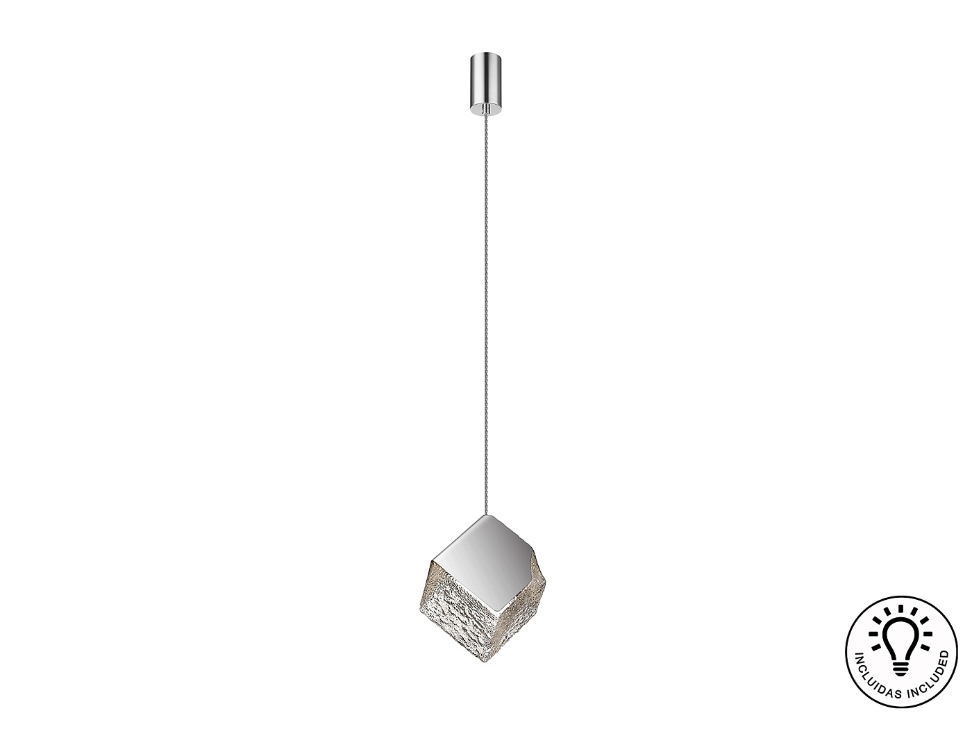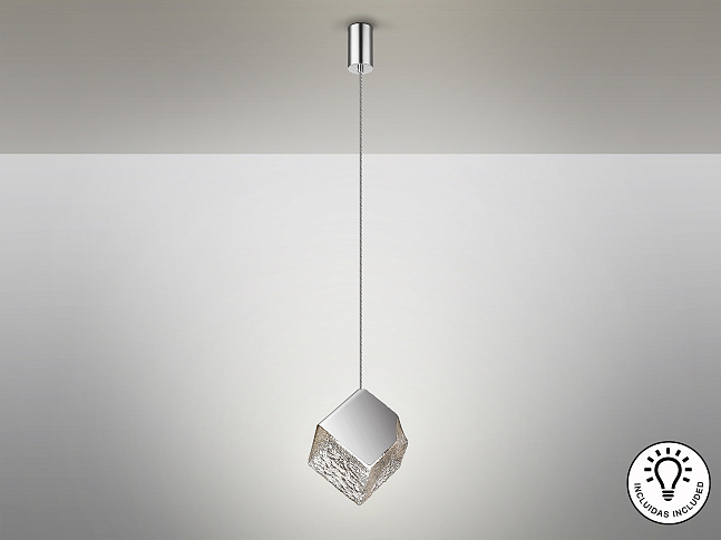 Подвес с 1 лампочкой из металла и стали с хромированным покрытием. Кубический абажур из фактурного стекла. Регулируется по высоте. ·Этот товар включает 1 светодиод G9 6 Вт.