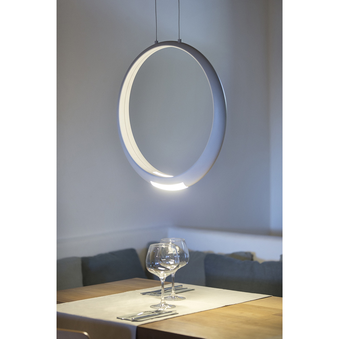 Ring вдохновлен философией дзен и ее верой в духовность пустоты. Светильник Ring изготовлен из алюминиевого литья под давлением, материала, обеспечивающего жесткость и легкость одновременно. Он также включает в себя высокоэффективную светодиодную технологию, идеально подходящую для его уменьшенной толщины.