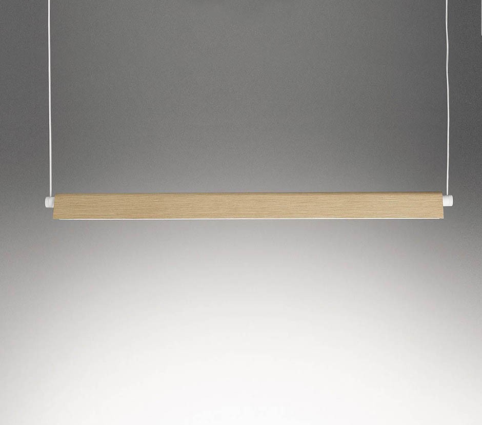 Подвесной светильник прямого света из алюминия, с защитным стеклом и доступным в матовом анодированном серебристом, белом или текстурированном матовом черном цвете. Комбинируется с различными аксессуарами: корпус отражателя из сатинированного серебра, корпус отражателя с текстурой белого матового цвета, корпус отражателя из ламинированного натурального дуба с белой матовой внутренней частью или корпус отражателя из ламинированного дерева из натурального орехового дерева с внутренней матовой черной отделкой. Диммер.