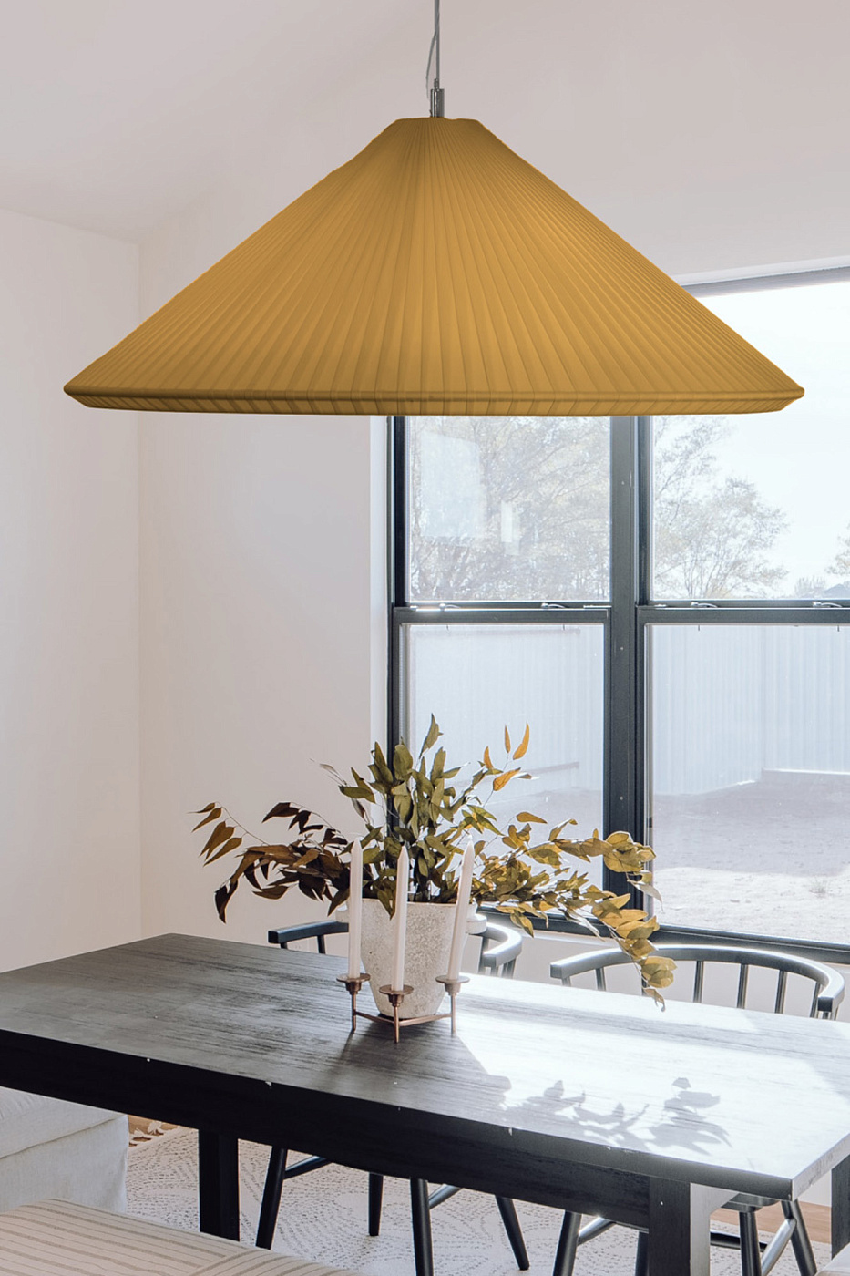 SAIGON IN — это подвесной светильник, используемый Nahtrang, доступный в различных цветах. Светильник имеет оригинальный абажур из лент, создающий оптическую иллюзию компактного абажура. SAIGON IN идеально подходит для домашнего освещения и гостиничных холлов. Сделано в Европе.