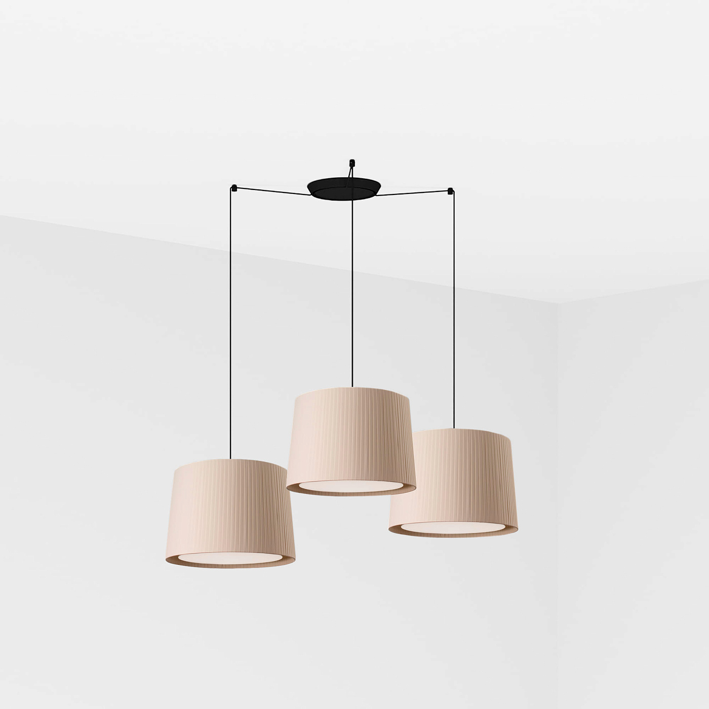 Версия с многослойным 3-световым фонарем. SAMBA — это коллекция ламп для внутреннего освещения, разработанная Faro Lab. Этот черный подвесной светильник с бежевым текстильным абажуром предназначен для освещения спален и гостиных. Это хороший выбор для отелей.