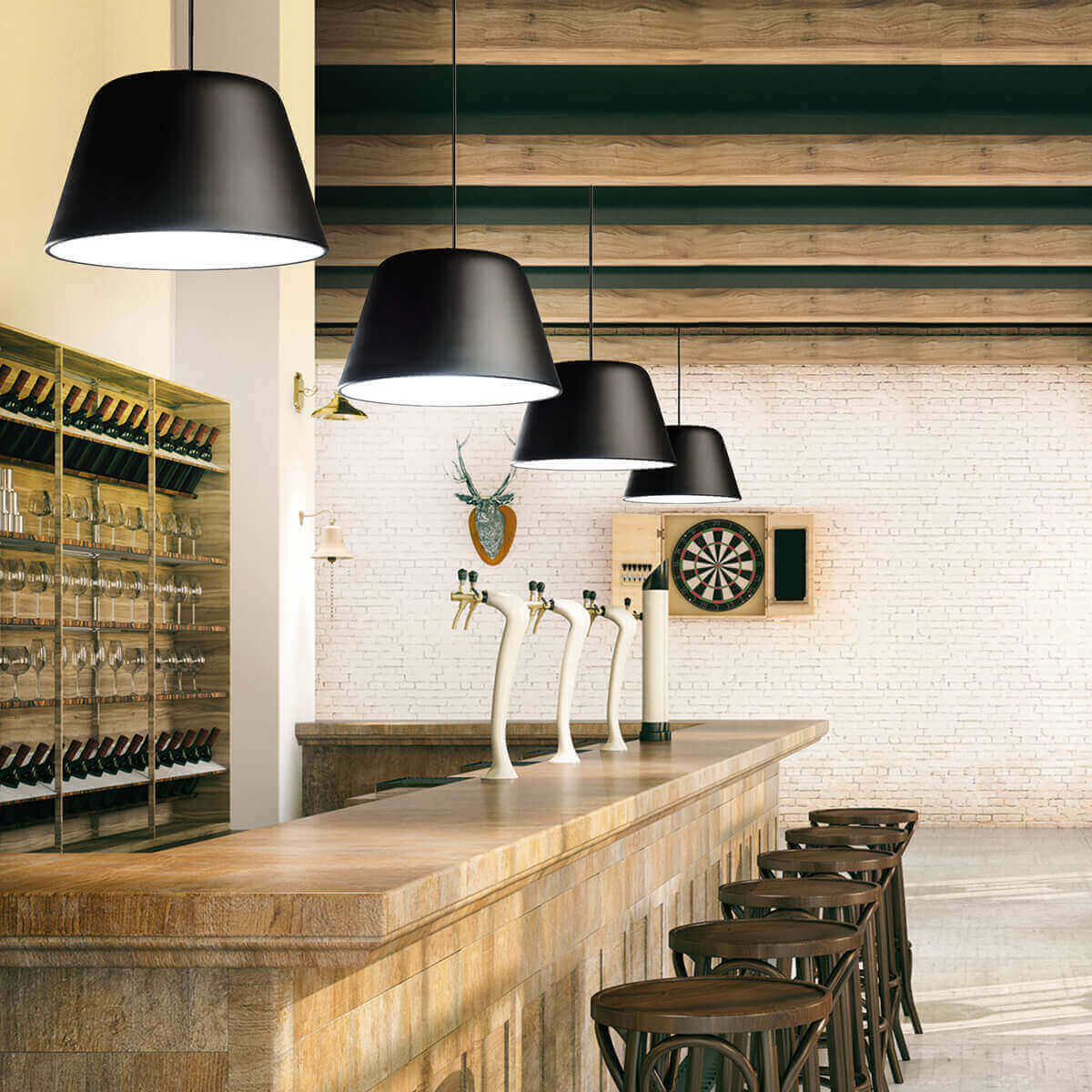 Подвесной светильник с металлическим абажуром Ø31 см в разных цветовых вариантах.
