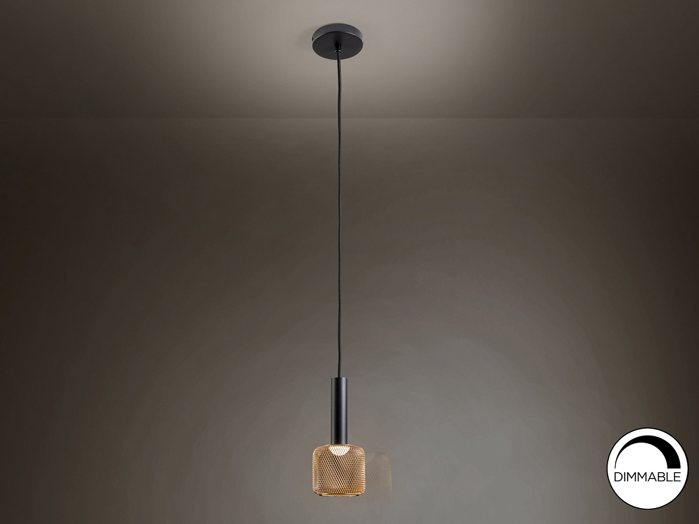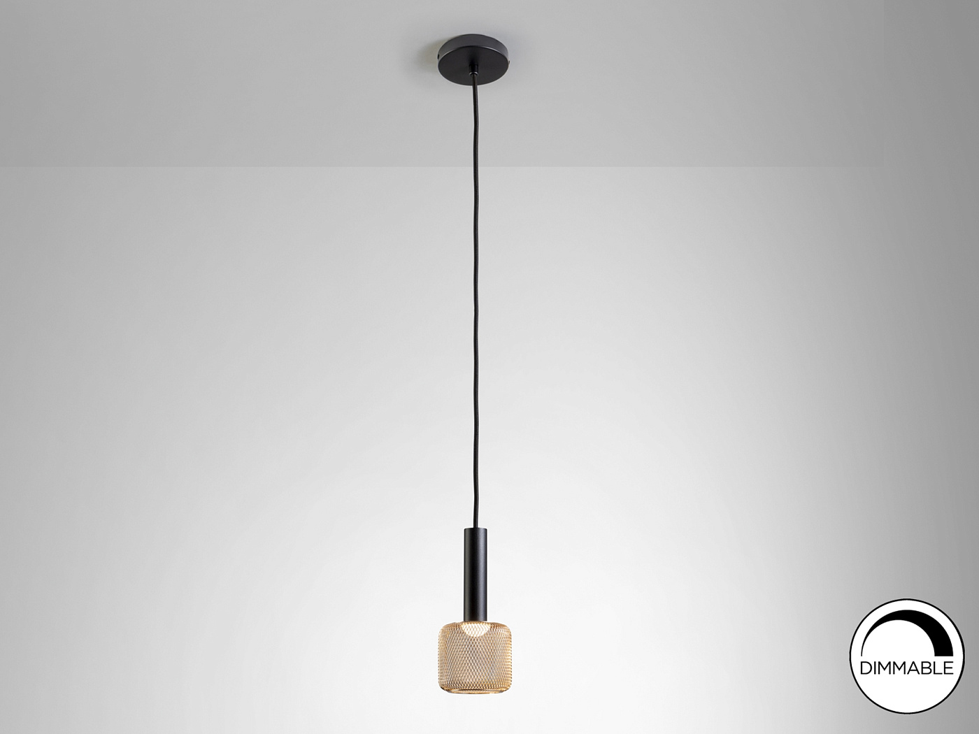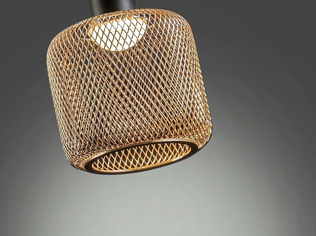 1-ламповый светодиодный светильник из матового черного металла и абажура из металлической блестящей металлической сетки, рассеиватель из опалового акрила. Светодиод 5 Вт, 450 лм, 3000 К. С ЗАТЕМНЕНИЕМ.