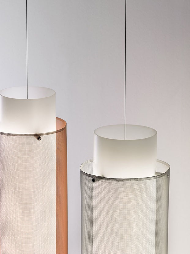 Дизайнерский светильник Skin представлен в двух моделях. Лампа первой модели помещена в корпус из серой металлической сетки. Корпус второй модели окрашен в коричневый цвет. Галогенную лампу скрывает внутренний плафон, произведенный из матового стекла. Высота каждого светильника с учетом подвесной нити, независимо от диаметра плафона, составляет 260 см.