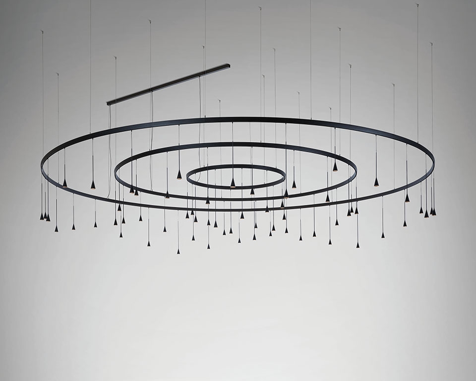 Skybell — это обширная система световых конструкций, разработанная для адаптации к любому типу применения. Их главной характеристикой является образ, который они создают: они тонкие и жизнерадостные. Они дышат фантазией и свободой в своих приложениях, поскольку их можно комбинировать в вариациях, смешивая 4 длины, пока не будет достигнута более индивидуальная и динамичная концепция лампы, или они могут оставить все «колокола» одной длины, достижение более традиционного образа. Системы Skybell делятся на 3 группы в зависимости от профиля: линейные, круговые и контактные, и благодаря различным возможностям, которые они предлагают, каждая из этих групп сама по себе образует семейство. Одной из главных особенностей Skybell является его модульность. Линейные и криволинейные профили можно комбинировать для создания нестандартных конструкций