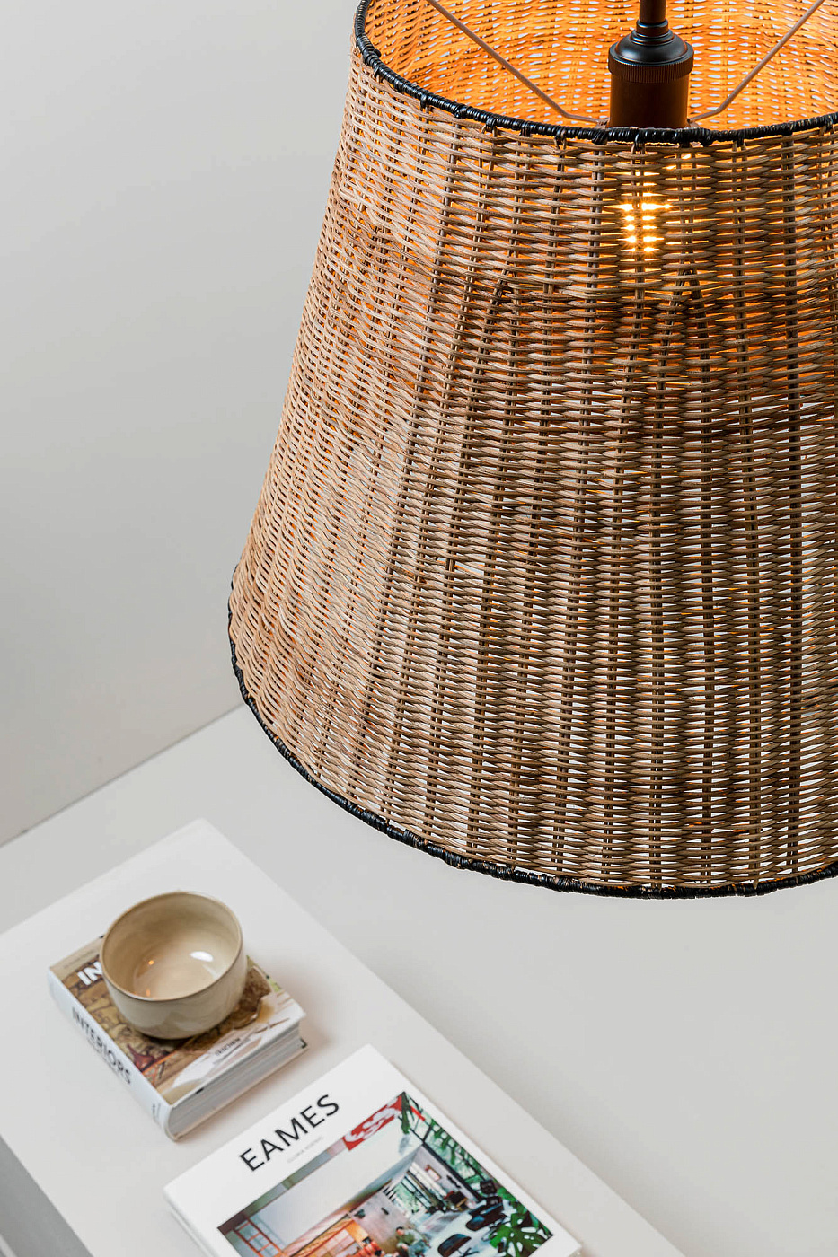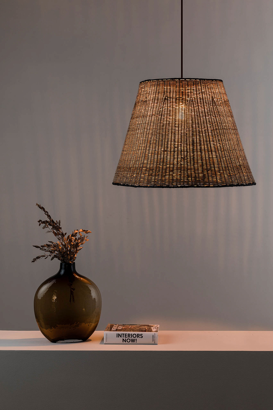 SUMBA — это коллекция внутреннего освещения, разработанная Faro Lab, в которой ротанг играет ведущую роль. Этот черный подвесной светильник с абажуром из ротанга предназначен для освещения спален и гостиных. Это хороший выбор для гостиницы.