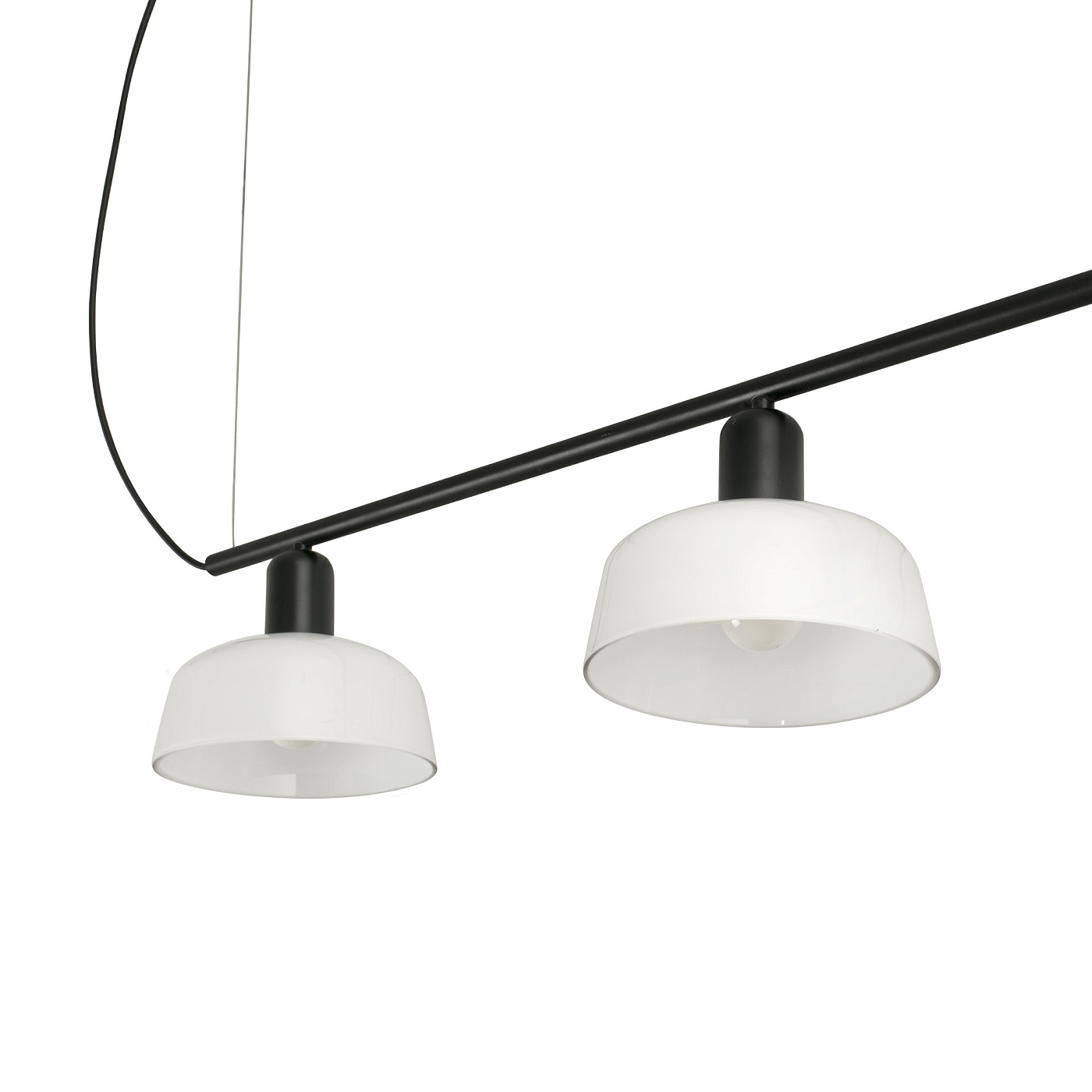 TATAWIN LINEAL S — это семейство светильников, разработанное Адольфо Абейоном. Форма тени напоминает верхнюю часть характерных домов Татауина, города на юго-востоке Туниса. Этот черный линейный подвесной светильник имеет абажур из белого опалового стекла.