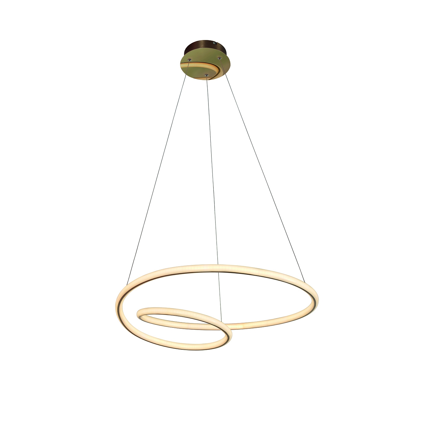 Подвесной светильник из металла и алюминия, покрытие "блестящее золото" и "матовое золото". Рассеиватель трубчатый из силикона опалового цвета. 47W LED, 3760 Lm, 3000K.