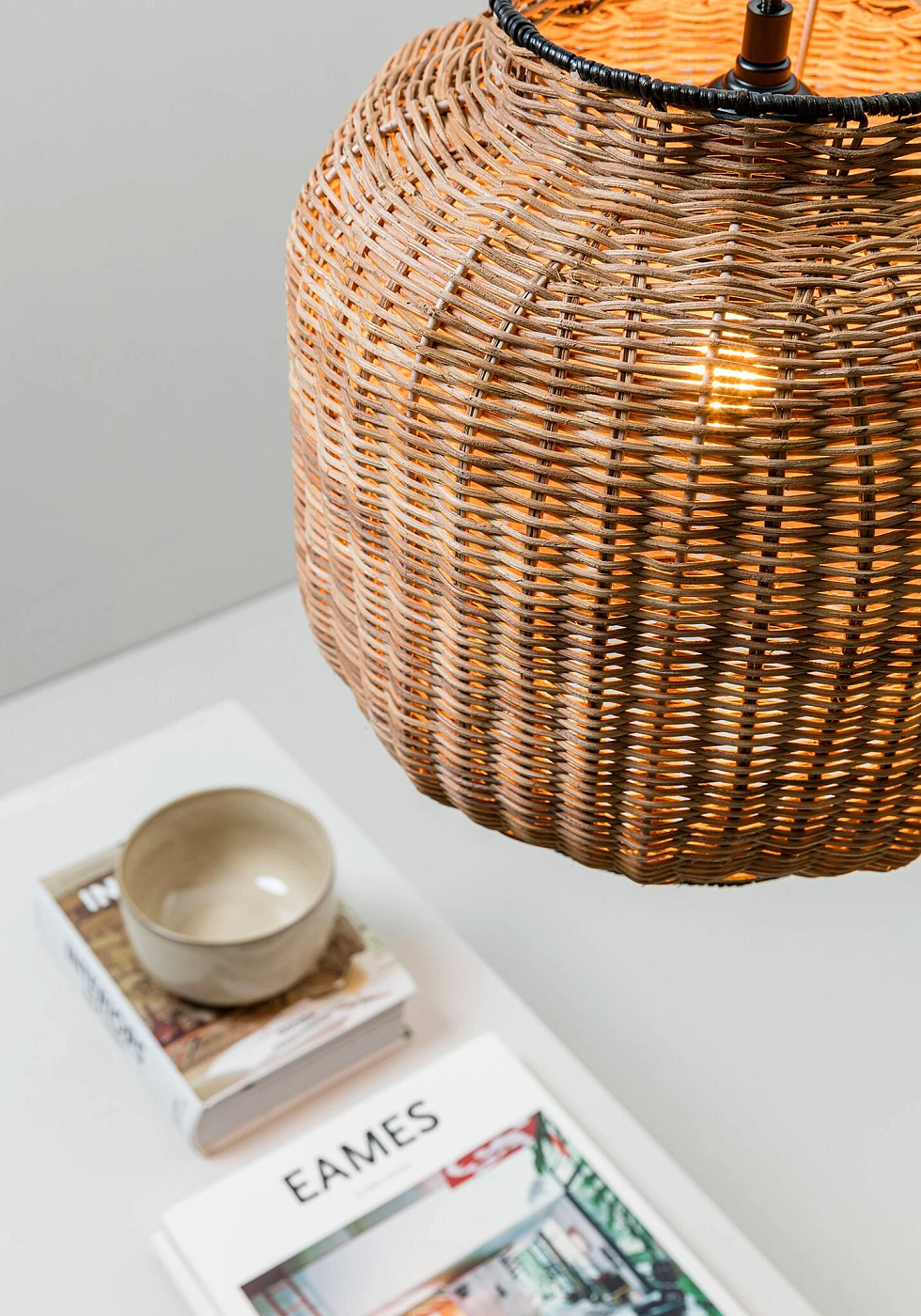 TUPAI — подвесной светильник для внутреннего освещения. Его форма фонаря в восточном стиле. Свет проецируется через ротанг абажура, неожиданно красивый эффект. Он идеально подходит для освещения спален и гостиных.